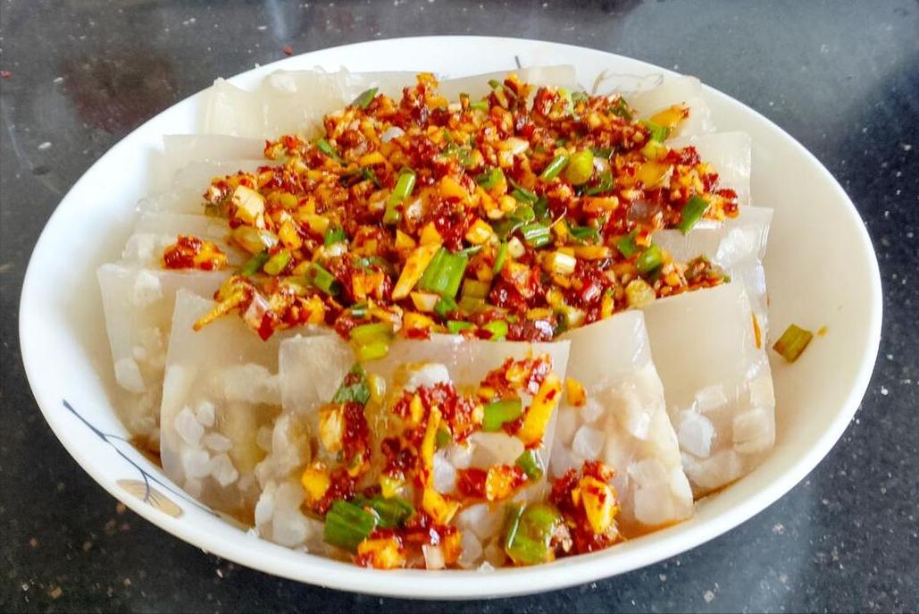 你還別小瞧了這道菜,算是待客的好東西,非常有面子,寓意也好。馬上要過年了,豬皮凍肯定得做起來,滿滿的膠原蛋白,冰冰涼涼、嫩滑Q彈的口感,晶瑩剔透的樣子,都十分誘惑人。