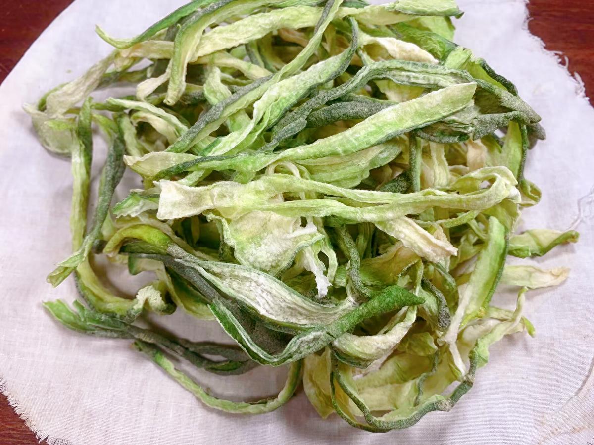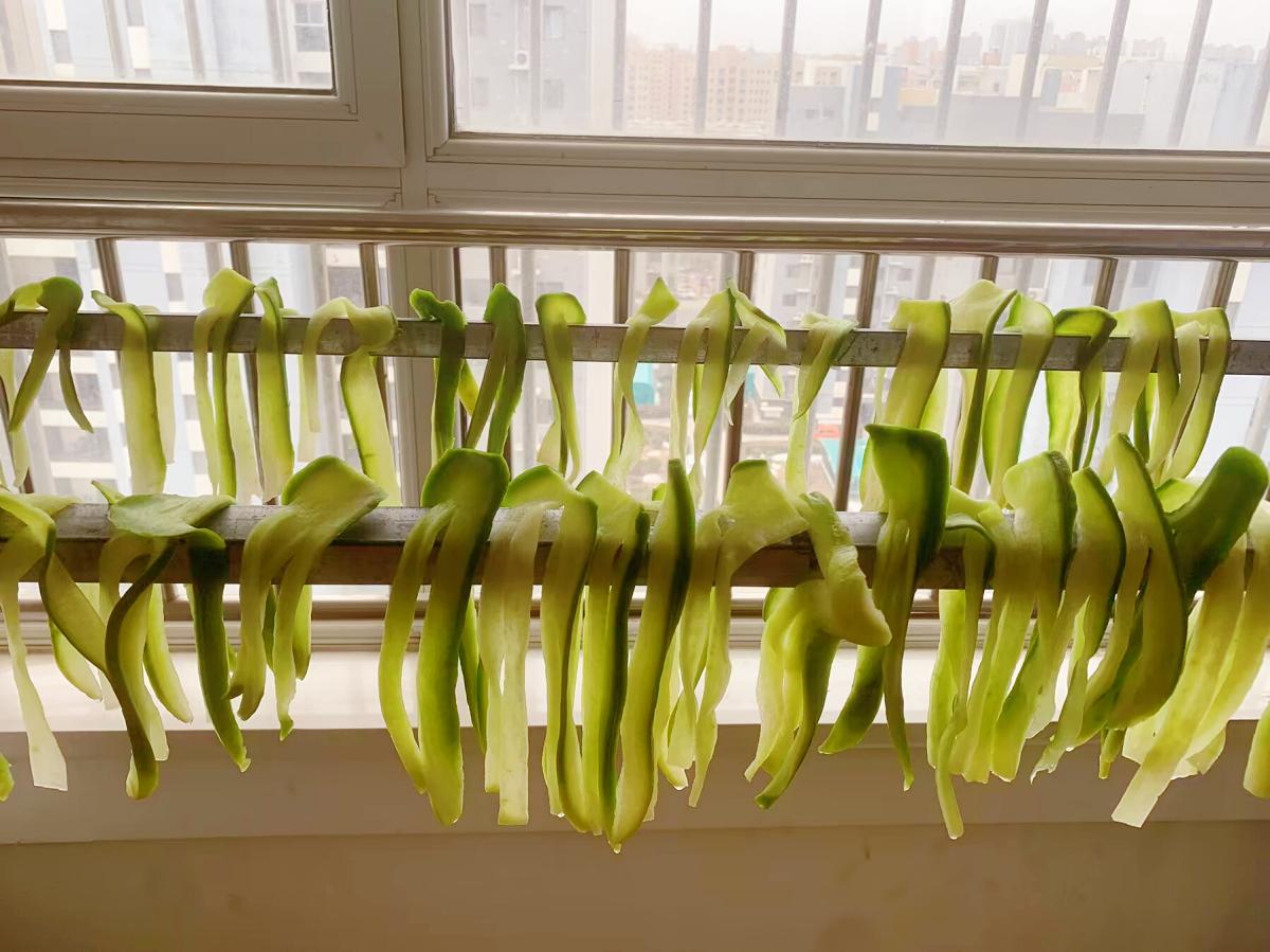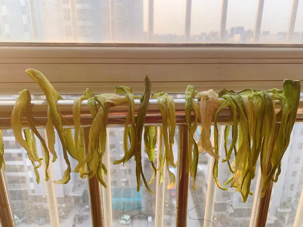 像這個氣溫蘿蔔條曬得時間會久一些,大概4-5天才能曬好,最後把曬好的幹蘿蔔條放在一個食品袋內保存,存放1年都不會壞。喫的時候提前泡一下,泡軟後涼拌、辣炒都可以,爽脆可口,特省事。