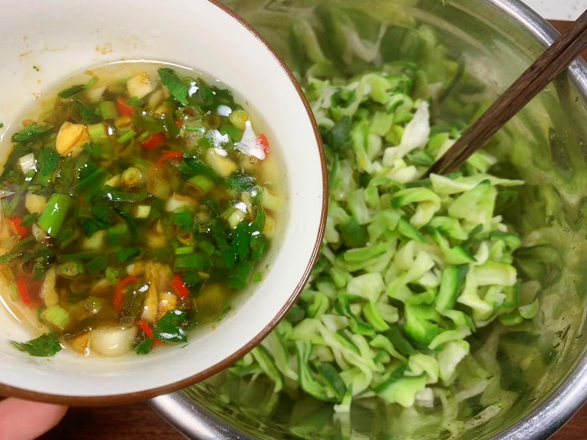 2、準備一些蒜粒、香蔥段、小米辣用熱熟油激發出香味,然後放入少許白糖、10克蠔油、15克味極鮮攪均勻後淋在蘿蔔條上,用筷子攪拌均勻即可,一次多拌一些,喫的時候適量取一些即可。