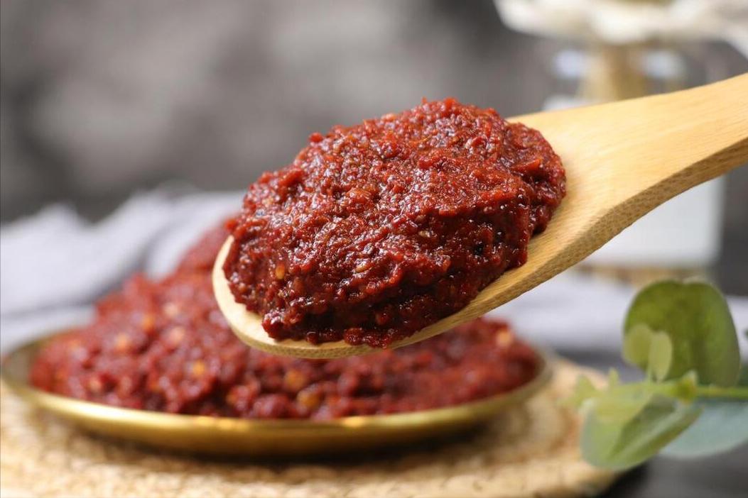 2、下面往鍋子裏倒油,燒熱以後放上魚開始煎,把兩面都煎到金黃之後,先將其盛出來。緊接着放上蔥薑蒜、幹辣椒、花椒,煸炒出香味以後,來1勺豆瓣醬炒出紅油,豆瓣醬的放入,可以起到給魚去腥的效果,掩蓋多餘的腥味,這是第1樣。