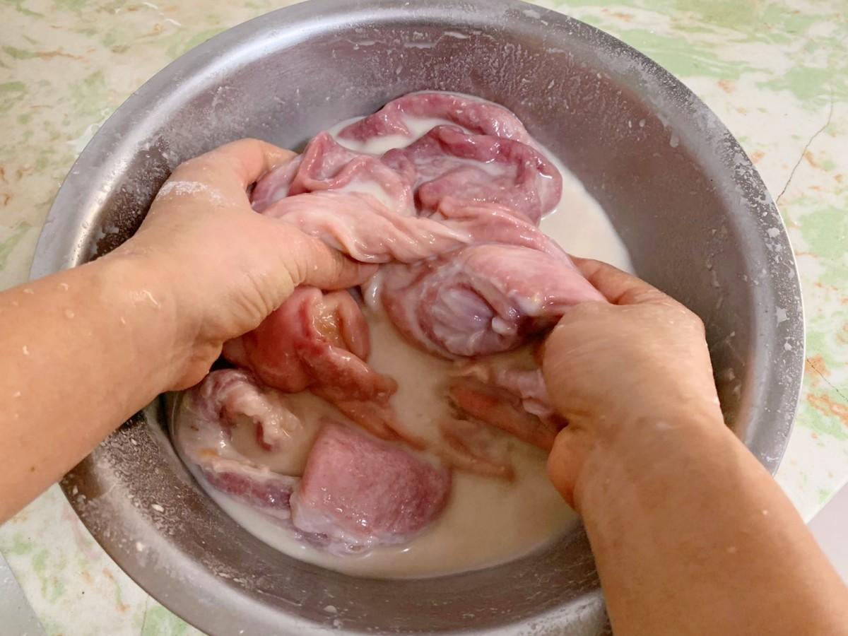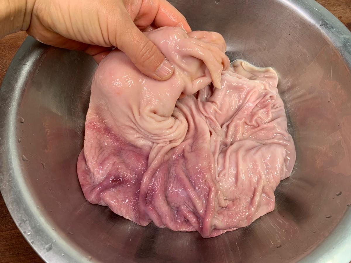 過年洗豬肚,加鹽和麪粉都不對!用“它”來洗,豬肚亮白無腥味!
