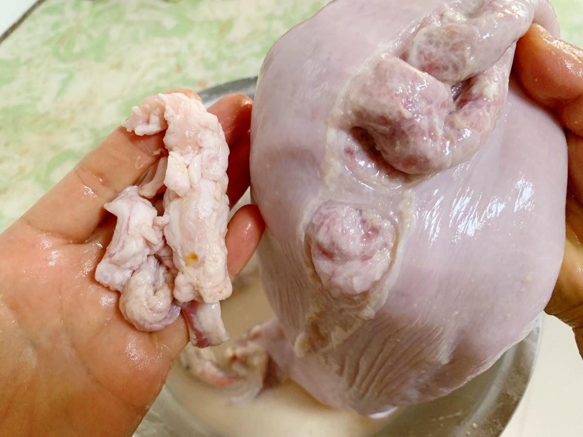 搓洗之後還要記得把豬肚上面的黃膜和油邊一塊處理乾淨,黃膜和油邊也是腥味的來源,都處理好後,再用清水沖洗乾淨即可。自己在家做豬肚,清洗可以說是很關鍵的一步,因爲豬肚確實太髒了,一旦清洗不到位,那麼豬肚喫起來就會又腥又臭還有可能發苦,這樣的話就直接浪費好東西了,太可惜了。