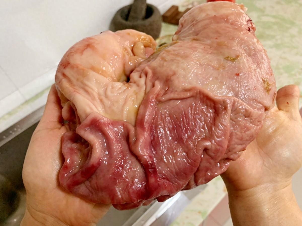 俗話說喫啥補啥,暖胃養胃肯定首選豬肚,豬肚好喫又營養,只是價格確實高,在我們這熟豬肚要50元一斤,說實話,對於我們家來說,要是經常喫真有點承受不了,心疼,畢竟每天除了喫,還有一堆其它的花銷等着。而新鮮的生豬肚才25元一斤,一對比就知道自己喫買生的更實惠,並且自己洗的也乾淨,喫着更放心。可能大家都覺得清洗豬肚非常麻煩,所以不想自己動手,其實方法對的話,豬肚清洗起來也特別簡單。