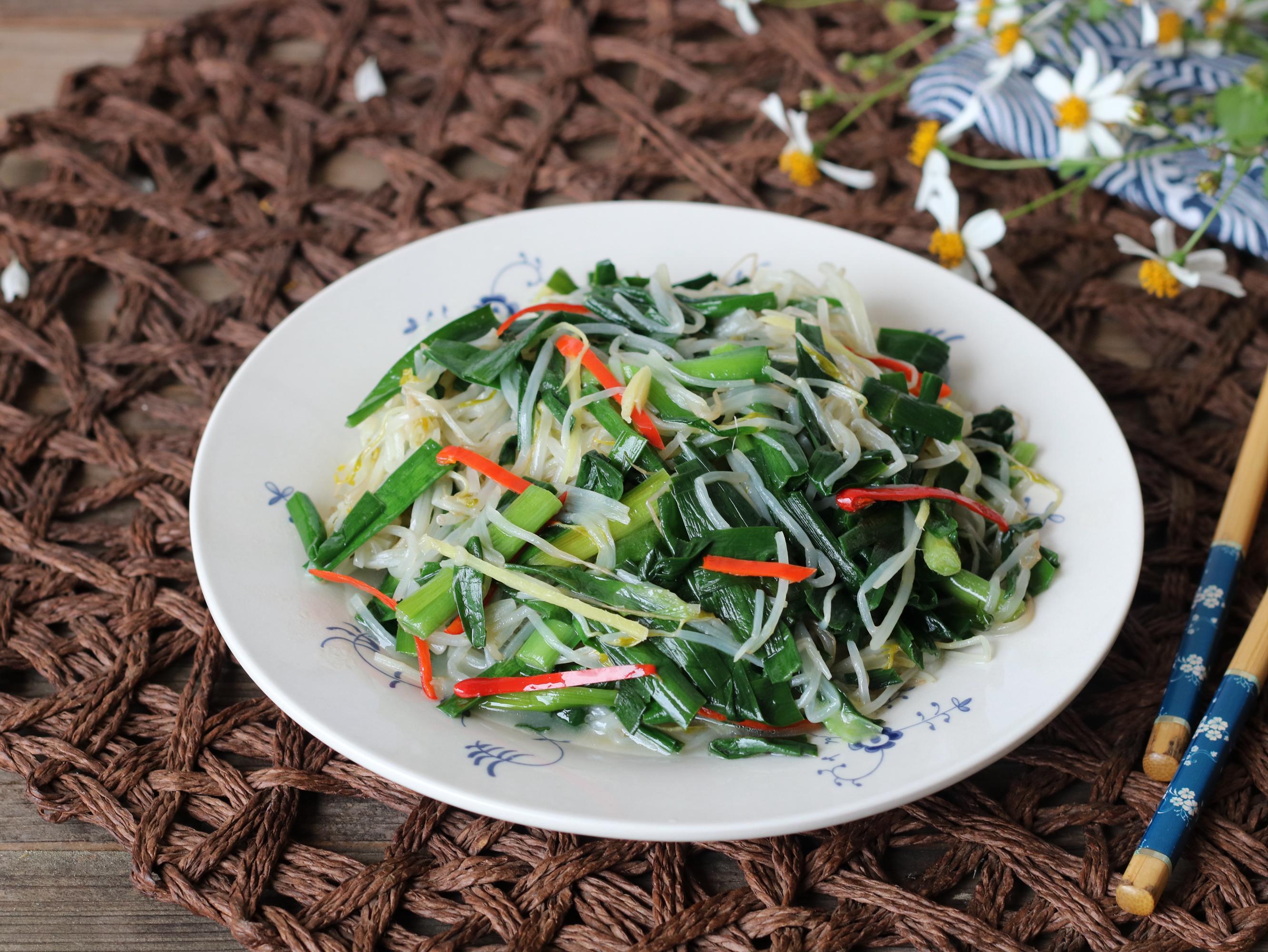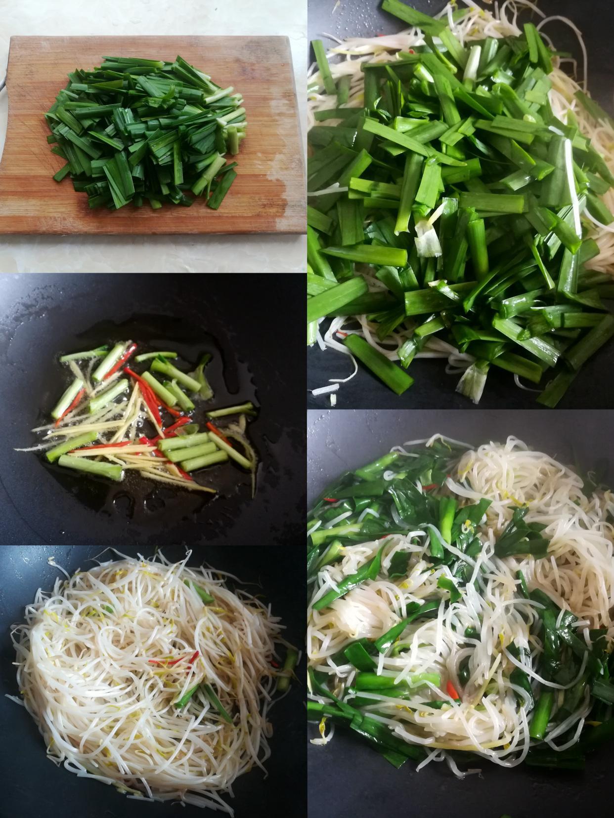 食材:豆芽、韭菜、生薑、辣椒、食用油、鹽