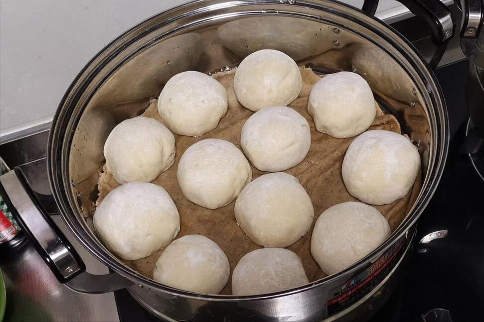 7、接下來開火開始蒸,蒸的過程中,全程保持大火,水燒開以後接着再蒸20分鐘,饅頭就徹底熟了。關火後的饅頭,不能直接掀開蓋子,需要燜上5分鐘,因爲直接掀蓋的話,肯定有不同程度的塌陷,燜一下就不容易出問題了,這是第三招。5分鐘後拿出來,晾涼後放冰箱冷凍,就可以啦。