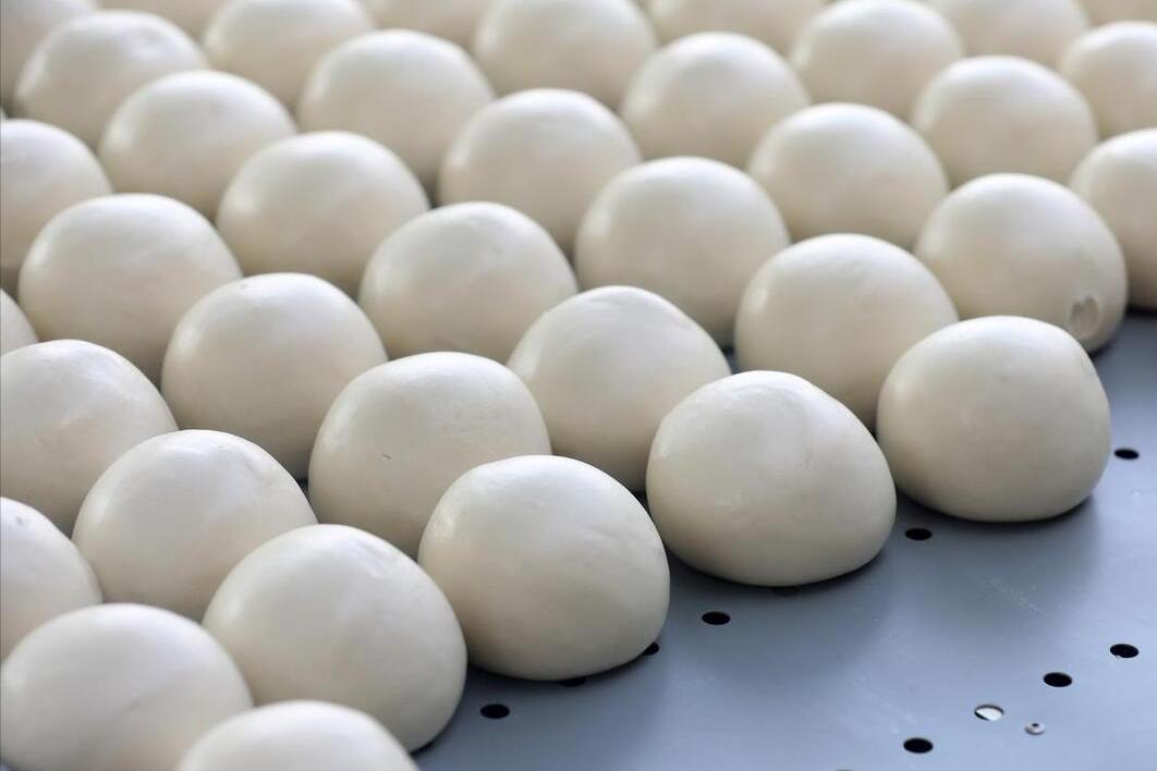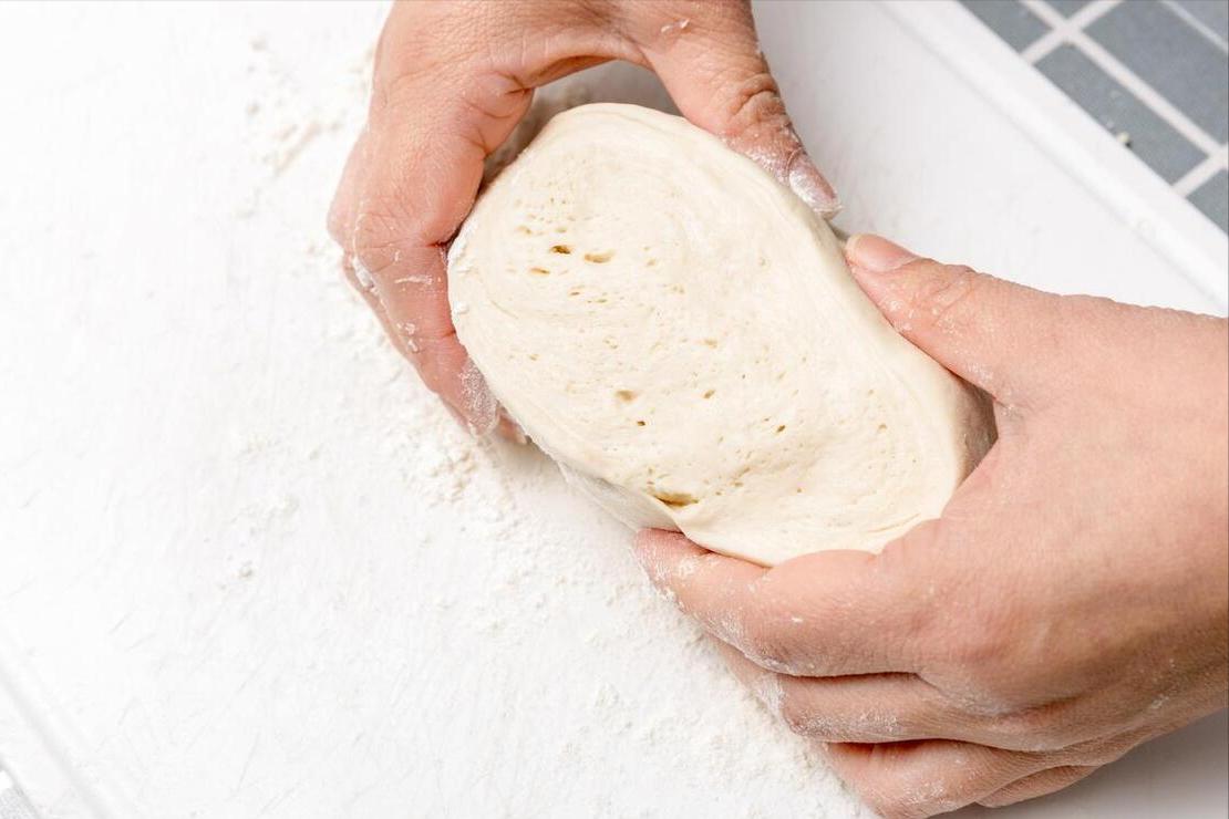 5、這時候將其全部取出來,放到面板上,開始不停的揉搓,把裏面多餘的氣體,都給排出來。排氣以後用刀切成劑子,每一個劑子都整理一下,弄成饅頭的形狀,有的喜歡圓形的,有的時候四方的,看個人喜好。