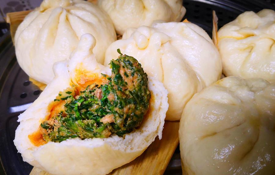 6.包好的包子放入籠屜中,二次醒發20分鐘左右,醒發好的包子拿在的掂一下,覺得很輕就可以了,蓋好蓋子大火燒開後繼續蒸20分鐘,關火後再燜1分鐘就可以出鍋了,鮮美好喫的薺菜大包子就做好了。
