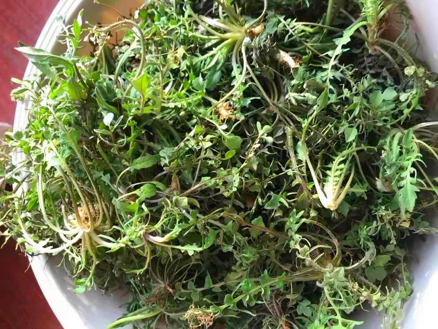 薺菜在《本草綱目》中也被稱爲“護生草”,營養價值很高。民間有“三月三喫薺菜”的說法,不過要說鮮,還得是這開春的的薺菜,鮮中透着清甜,嫩而不柴,不管咋做都是那麼地好喫!所以要想喫到鮮美好喫的薺菜真的要趁早,這是我中午爬山時挖的一把薺菜,雖然因爲沒帶工具,徒手挖得手生疼,不過還是覺得成就感滿滿,下面我就用它分享兩個薺菜的好喫做法: