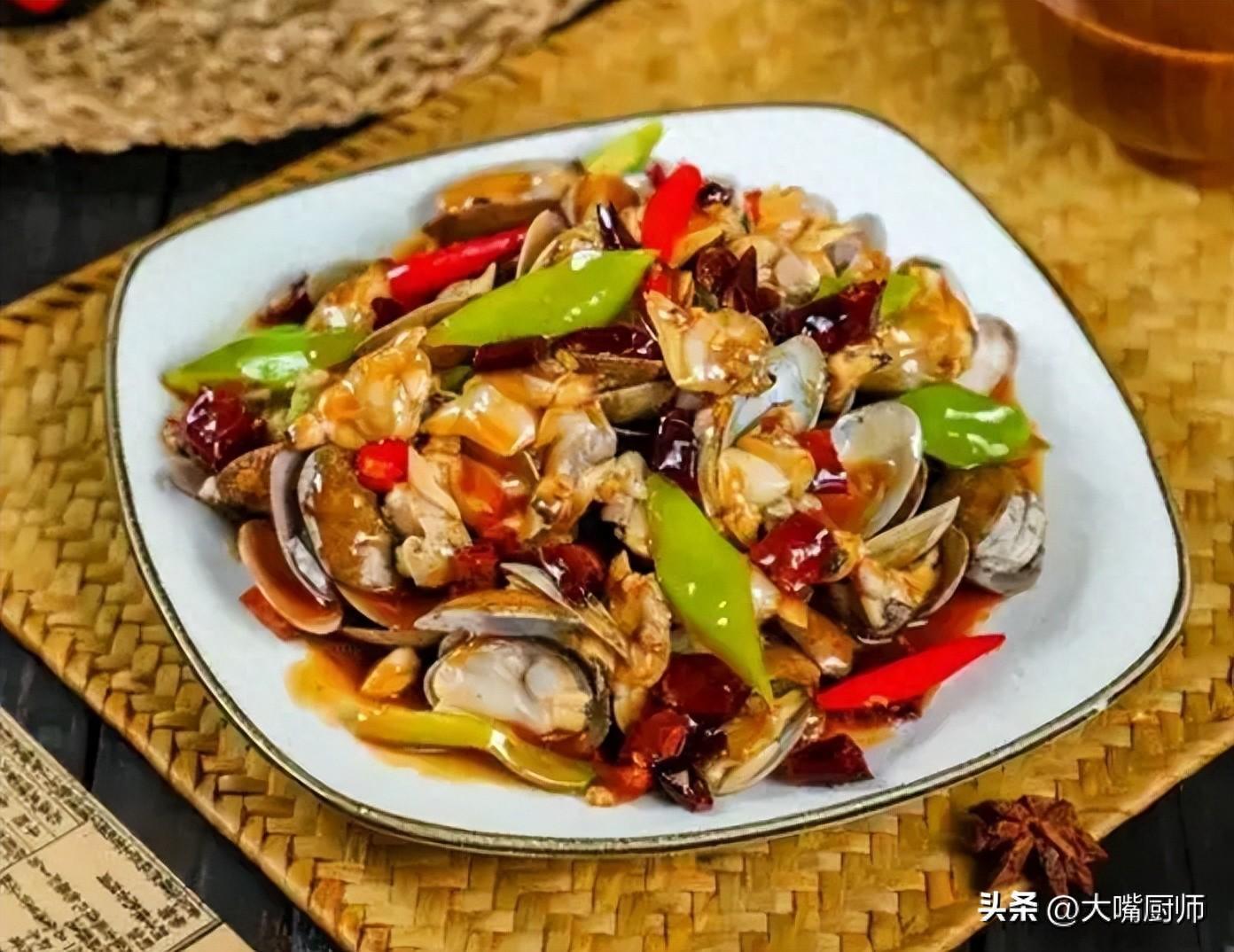 準備花蛤、幹辣椒、花椒、大蔥、生薑、醬油、料酒、食鹽、豆瓣醬、食用油。