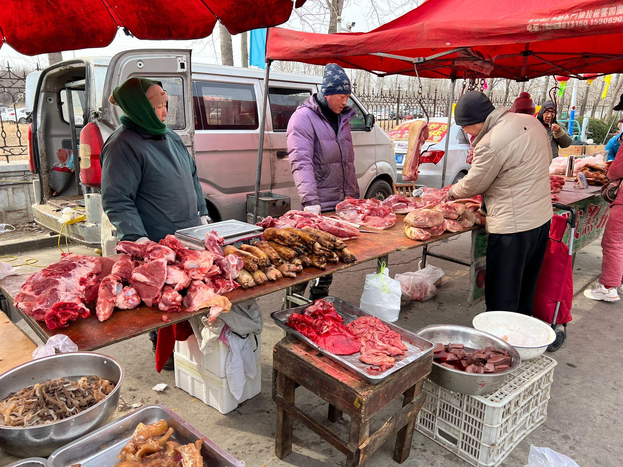 第五種:肉類,豬肉、羊肉、牛肉還有豬下貨比如豬腳,豬頭肉等等,我們這邊豬肉15元,羊肉38元,牛肉35元,今年的肉類價格不算貴,大家可以少囤些,很多人已經開始過年炸年貨了,所謂炸年貨就是指炸肉丸子,裏脊,炸魚,炸藕合等等。