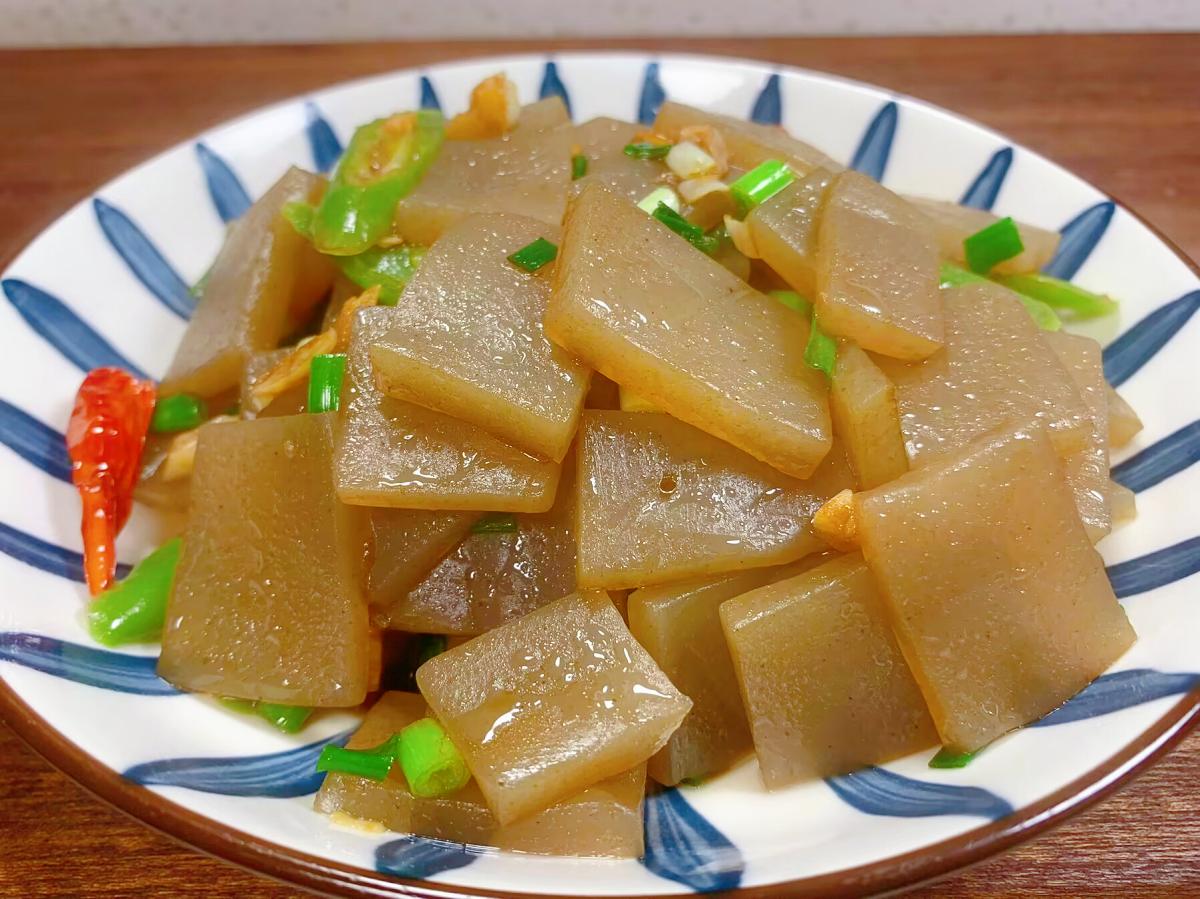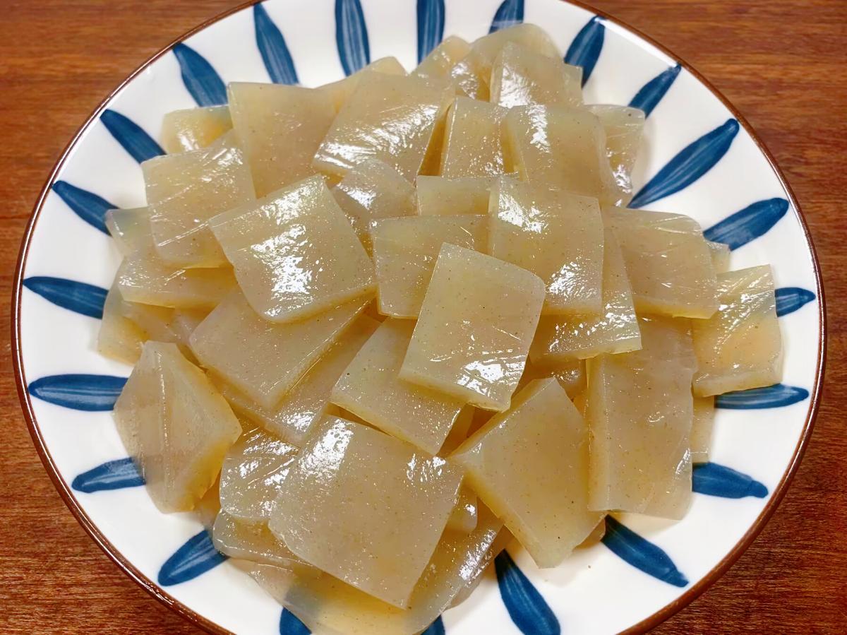 2、魔芋豆腐當中有食用鹼的澀味,無論怎麼喫都需要先焯水,這樣才能去除裏面的異味,提升口感。