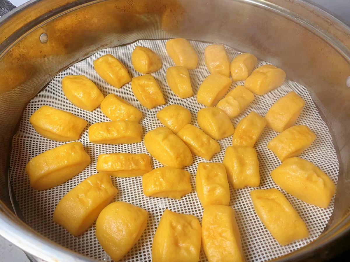 胡蘿蔔小饅頭出鍋了,一次可以多做一些,晾涼後裝入保鮮袋密封好,冷藏在冰箱,下次喫的時候稍微加熱一下即可,非常方便。胡蘿蔔這樣蒸成小饅頭蓬鬆喧軟、不加任何色素,營養豐富又好喫,連5歲挑食的小兒子一口氣都能喫10個,比包子、饅頭好喫多了。