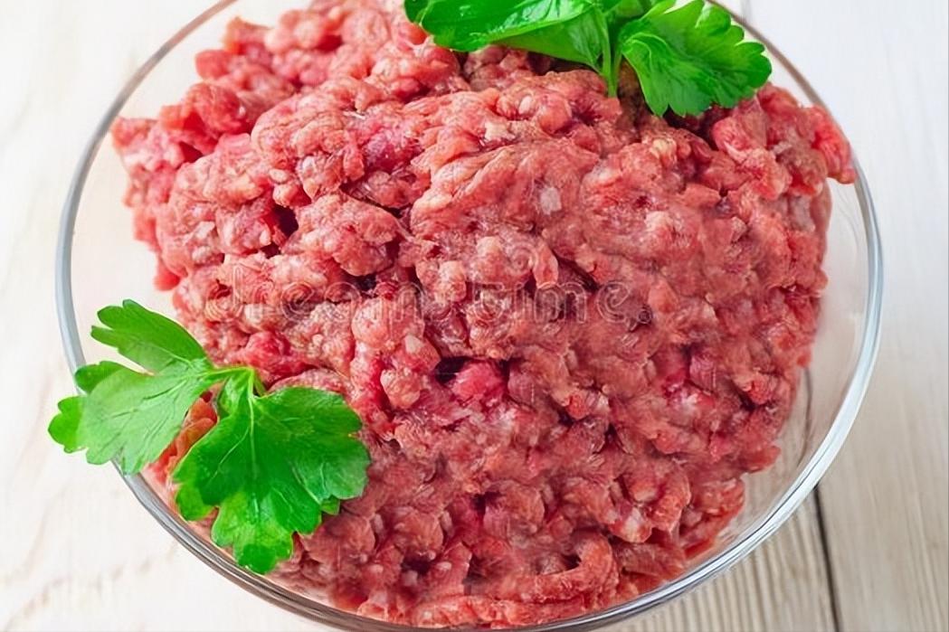 1、先把肉餡打碎,我這裏用的是牛肉,大家喜歡什麼肉,用什麼肉就行,打碎後的肉餡,直接盛在一個盆裏。