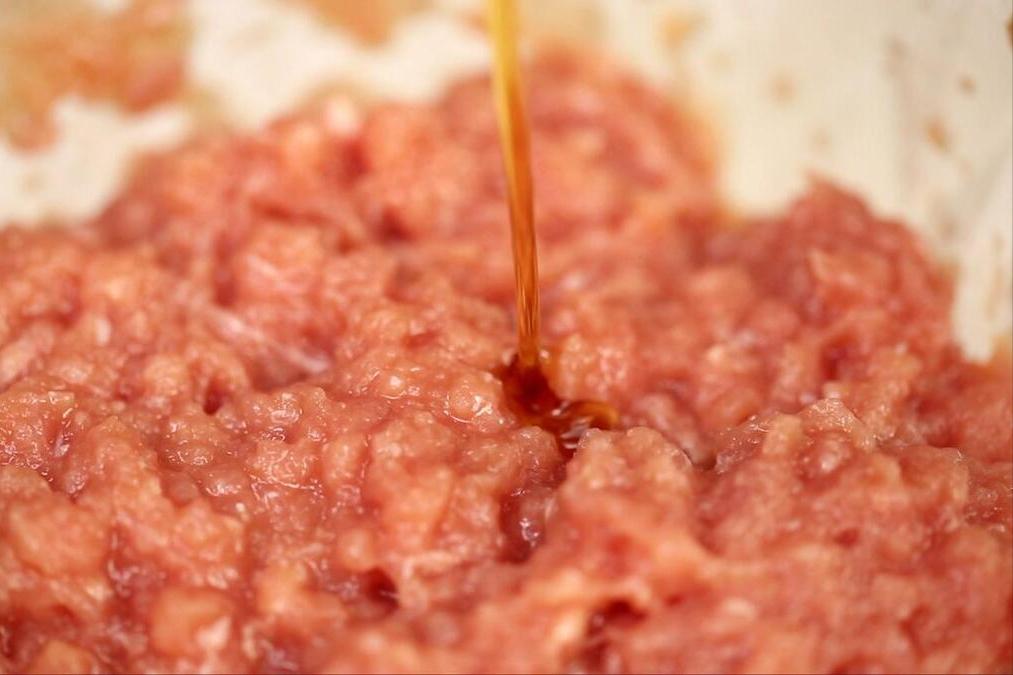 食材:白菜、肉餡、蔥末、薑末、花椒水、香油、生抽、老抽、鹽、雞精、白胡椒粉