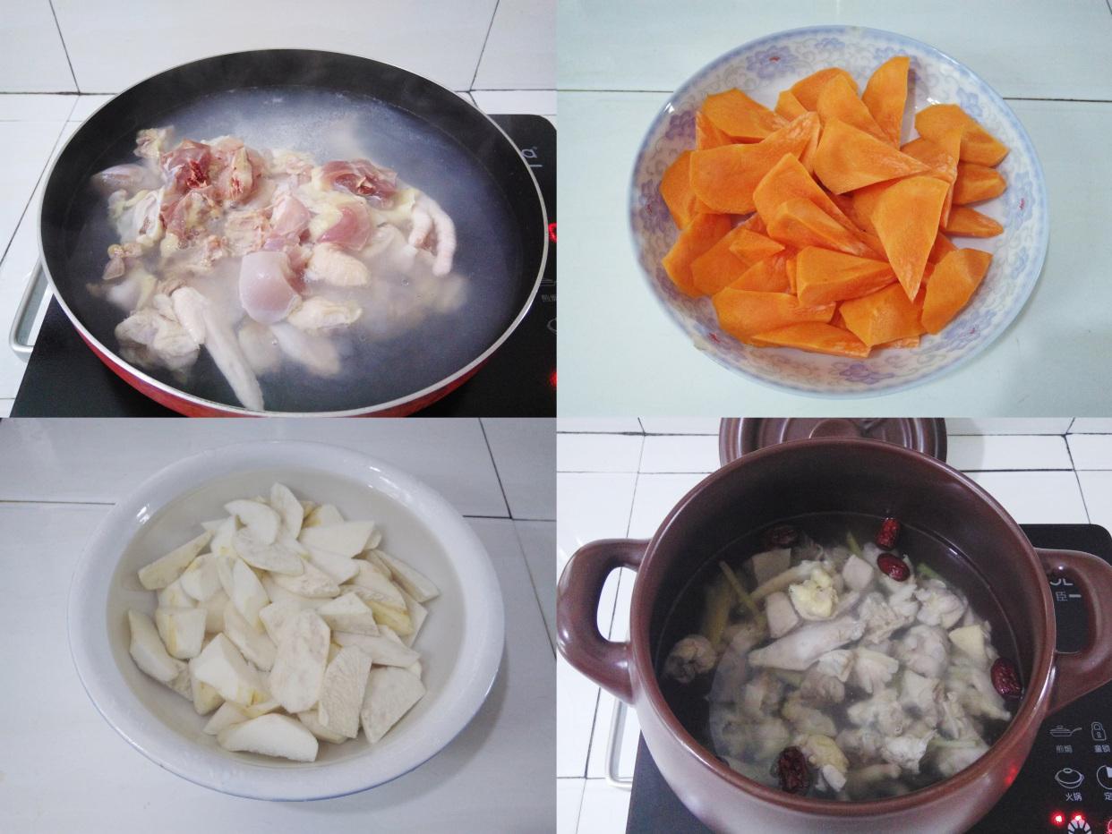食材:母雞、淮山、胡蘿蔔、紅棗、生薑、料酒