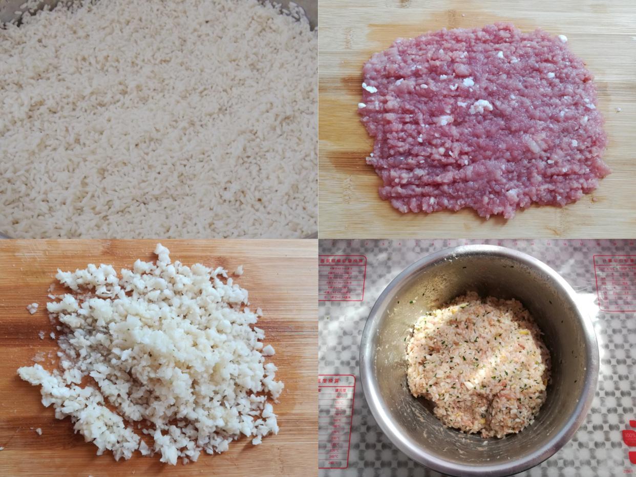 食材:糯米、豬肉、馬蹄(荸薺)、生薑、香蔥、玉米澱粉、鹽