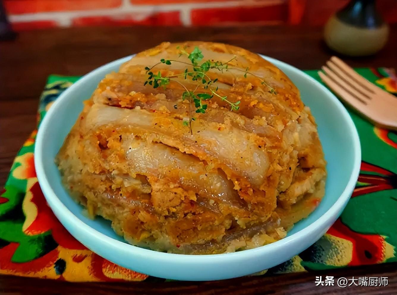 3、蒸鍋加水燒開,放入粉蒸肉蒸1個小時,即可出鍋,撒上蔥花,軟爛入味,入口即化,老人孩子都愛喫,越熱越香。