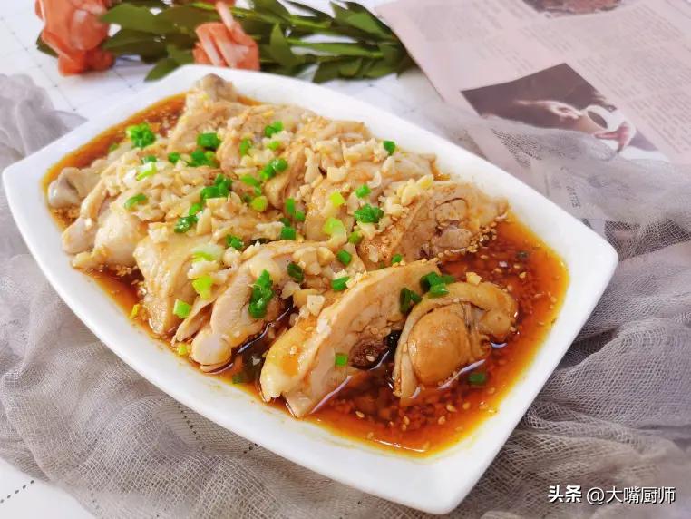 3、加入生抽、蠔油、香醋、食鹽、白糖、胡椒粉,攪拌均勻後澆在雞腿上,撒上花生碎、蒜末、蔥花,潑上熱油熗出香味即可。