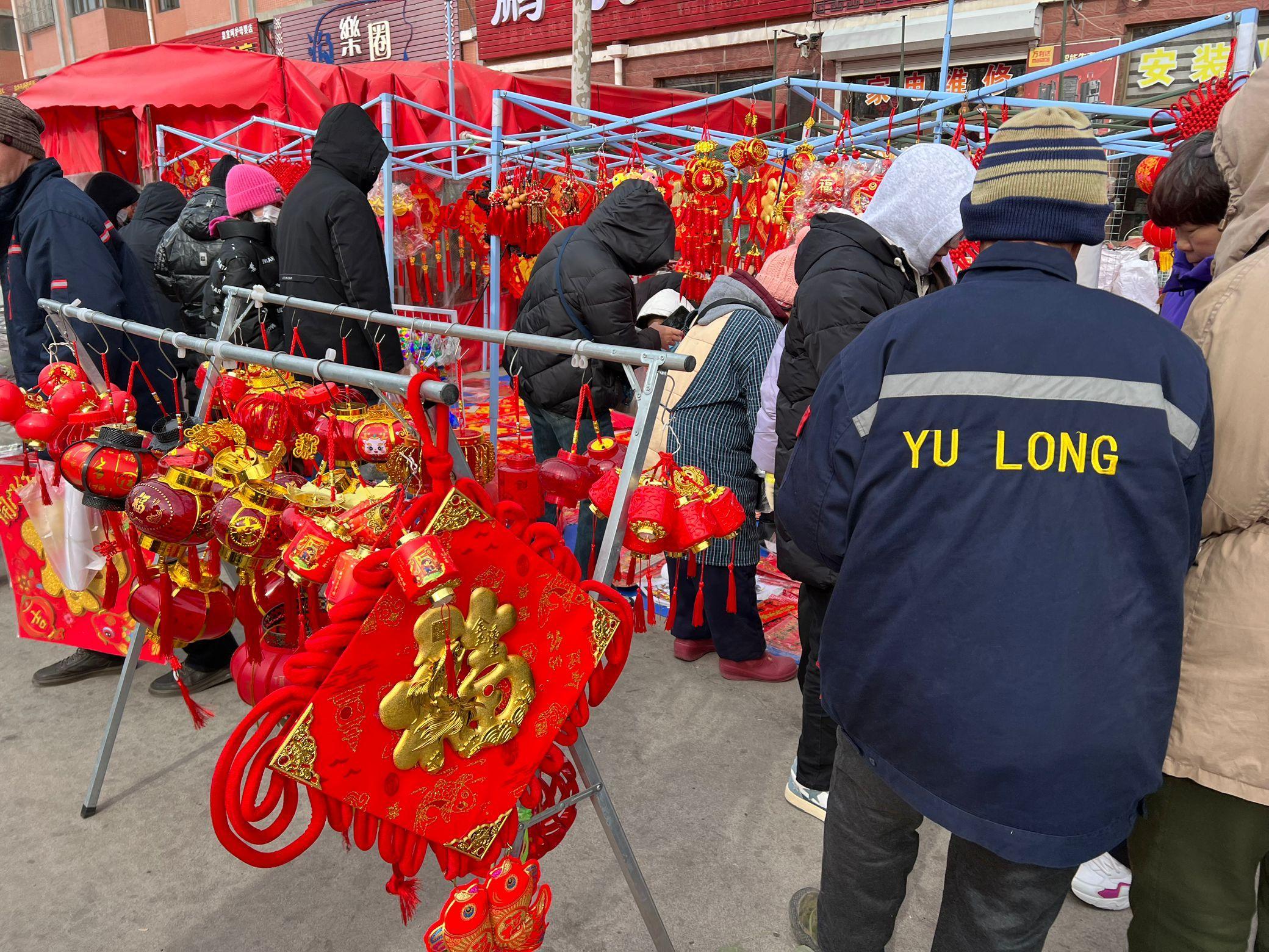 第一種:對聯福字。走在農村大集上如果你不知道該買什麼,就往人多的地方走,肯定沒有錯,剛來到大集上就看到一堆人圍着挑選對聯和福字,琳琅滿目的福字看着就喜慶,過年一定要買幾個回家貼,貼福字有講究,一定要貼“倒”福字哦。