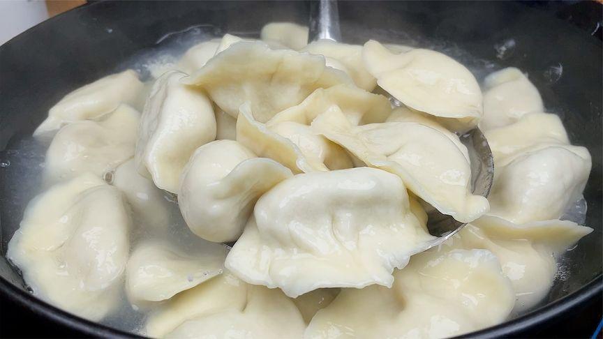 2、最後放入餡料包成餃子,水開後加入一勺食鹽,把餃子放進去。煮開後加入兩次冷水即可出鍋。色香味俱全,營養豐富,而且鮮嫩多汁,不出水,喫起來不腥不柴,口口爆汁。