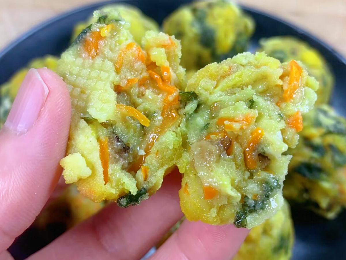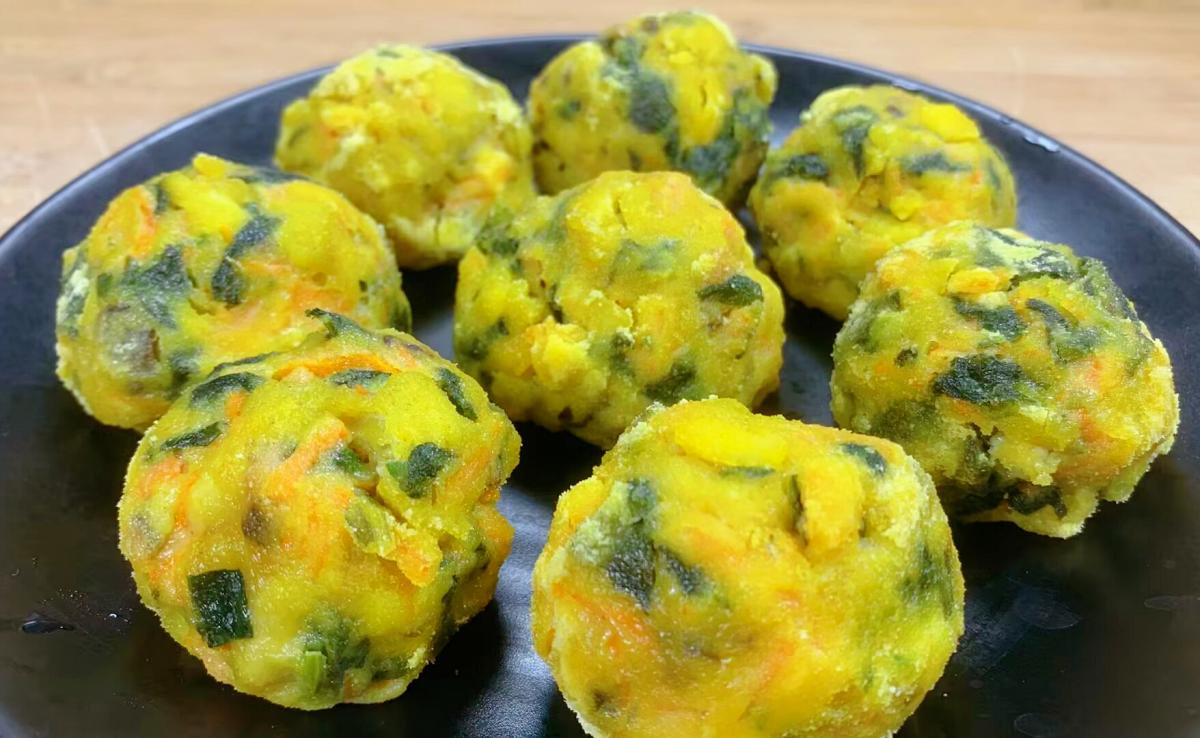 1、玉米麪搭配芹菜葉做菜糰子營養更高,這兩種食材都是促消化食物。平時我們不喫的芹菜葉不要丟掉,清洗乾淨後切碎搭配玉米麪、胡蘿蔔絲,淋入開水燙一下玉米麪,這樣也不用單獨焯水芹菜葉和胡蘿蔔絲了,直接用筷子攪拌一下,稍微晾涼後捏成玉米麪菜糰子。