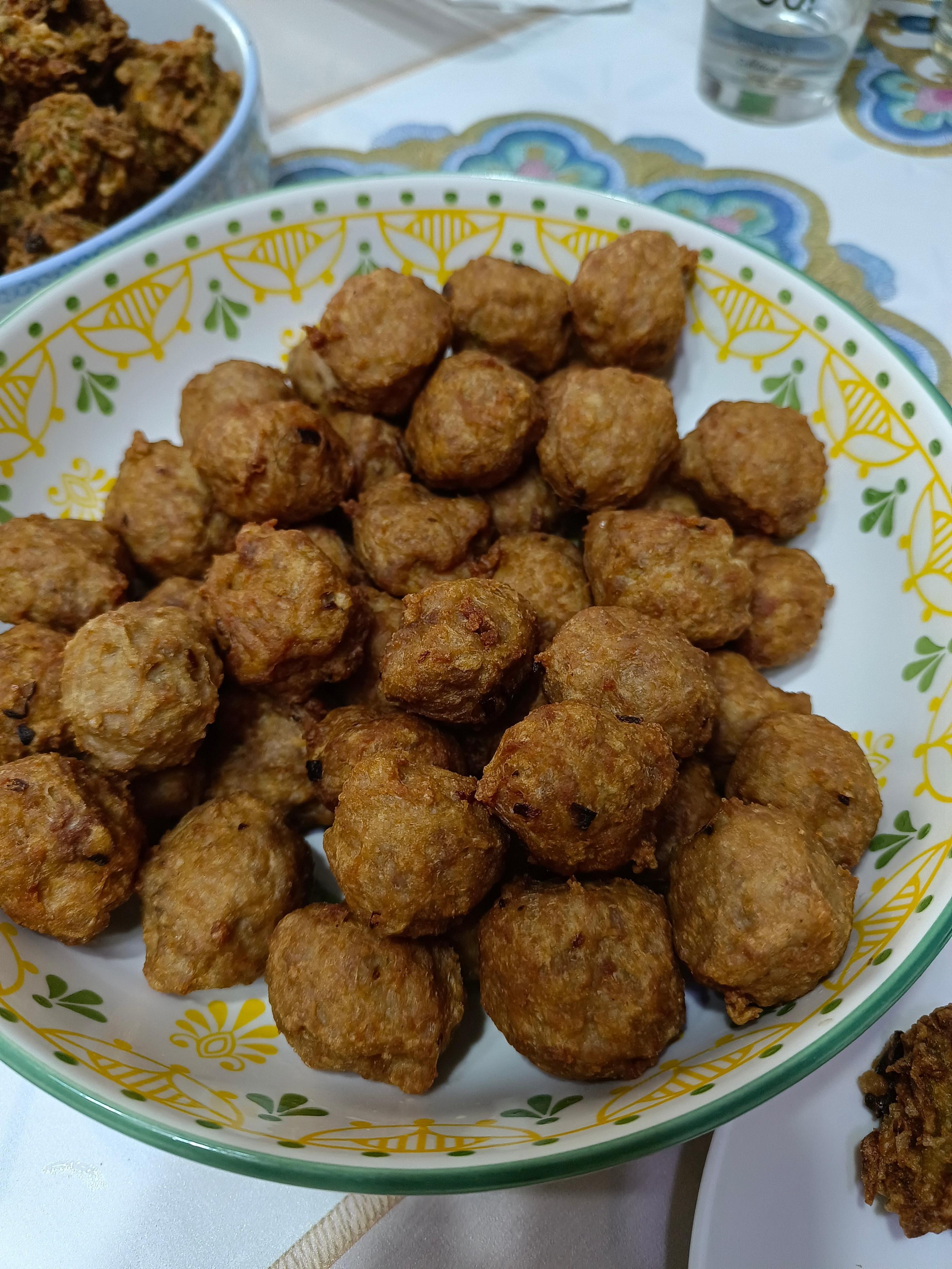 每年的年夜飯,山東人都會非常默契的擺出同一道菜,那就是炸貨,而這道菜在山東人眼裏,是由四件套組成,分別是炸蘿蔔丸子、炸肉丸子、炸藕合、炸魚,而作爲資深山東人,最快樂的事情就是,守在鍋旁,一邊炸一邊喫熱乎的,那纔是炸貨的靈魂所在,一旦上桌那味道都會大打折扣。