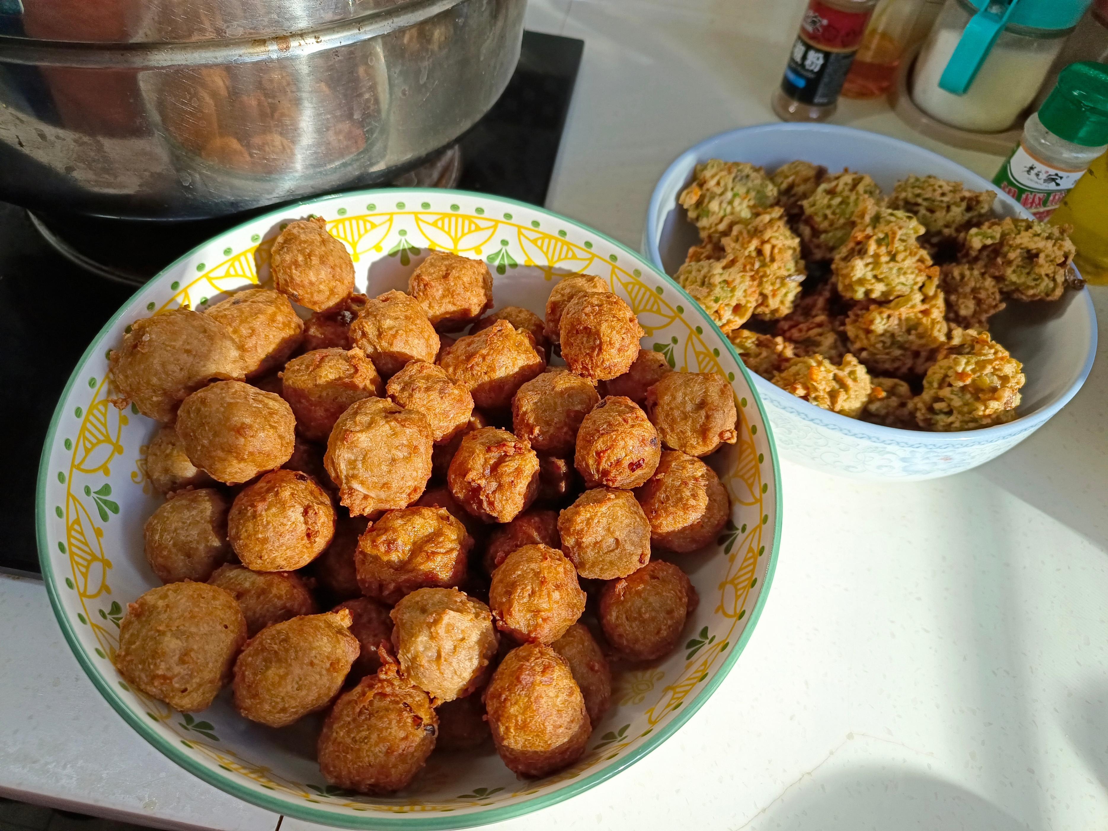由於炸的太多,真的是一盆又一盆,很多家都會用臉盆子裝,這炸的不是年貨,而更多的則是忙碌雜亂的年味,今天就分享一下我過年炸的豬肉和蘿蔔丸子。