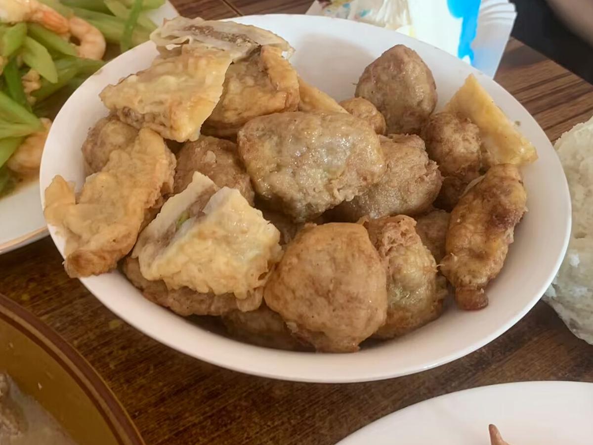 最後一道菜就是我們山東這邊的特色炸年貨,丸子、小酥肉和藕盒,喫飯時這老三樣拼成一大碗,熱一下端上飯桌,標配我們山東大饅頭,蘸着蒜泥喫賊香。
