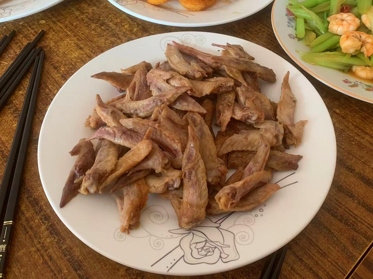這道菜是我在熟食店買的,是我們當地特色,直接裝盤特別省事,也是老公最愛喫的下酒菜。這道菜也特別有講究,寓意展翅高飛、飛黃騰達。