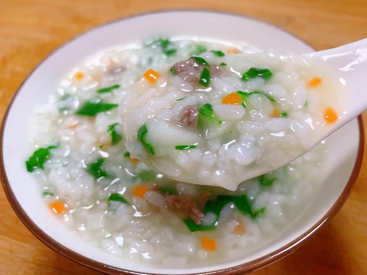 牛肉蔬菜白米粥就做好了,鮮香順滑,牛肉嫩滑,還有大米的香氣,每天早上來一碗,全身熱乎乎的,整個人都特舒服。這鍋粥有菜有肉,滋補營養,老少皆宜,太香了。