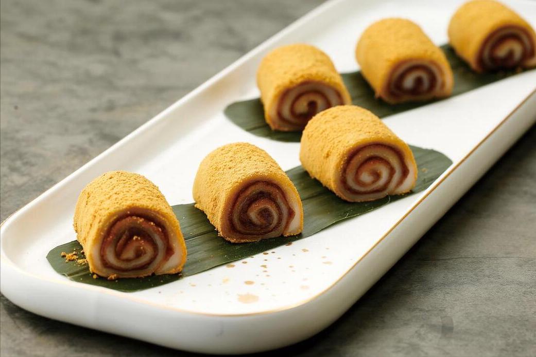 2、上面蓋一層保鮮膜,然後上鍋蒸25分鐘,蒸好後取出來,放在案板上揉一下,揉好後兩面都裹上熟黃豆粉,然後擀成長方形。上面塗上豆沙餡,然後從一旁捲起來,卷好後切成塊狀,再撒上點黃豆粉就可以啦。