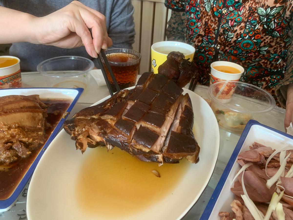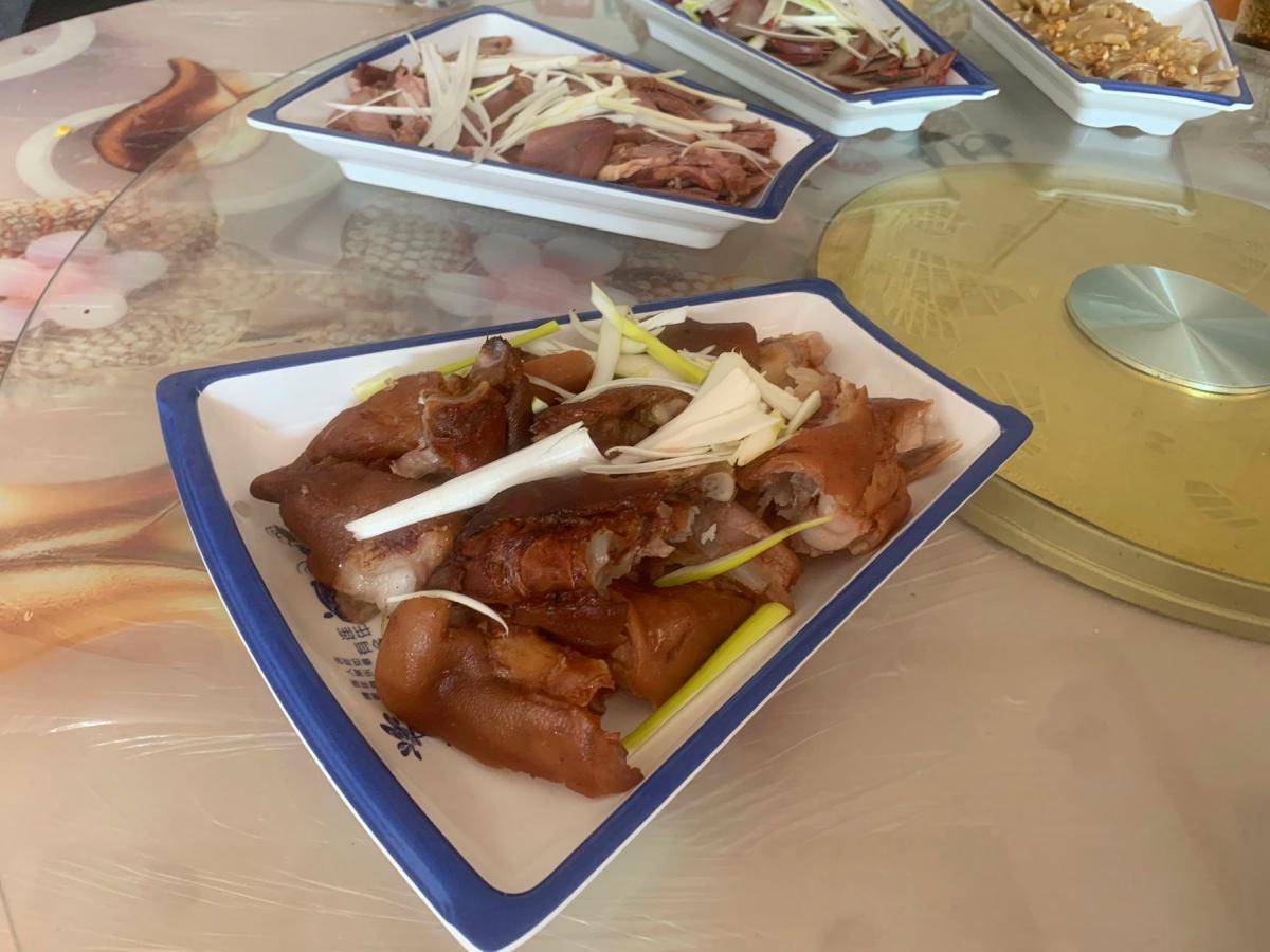 這道菜很搶手,上桌後一人一塊秒光,豬腳含有豐富的膠原蛋白,濃郁的薰香味,軟爛有嚼勁,豬腳寓意來年抓更多的錢財。