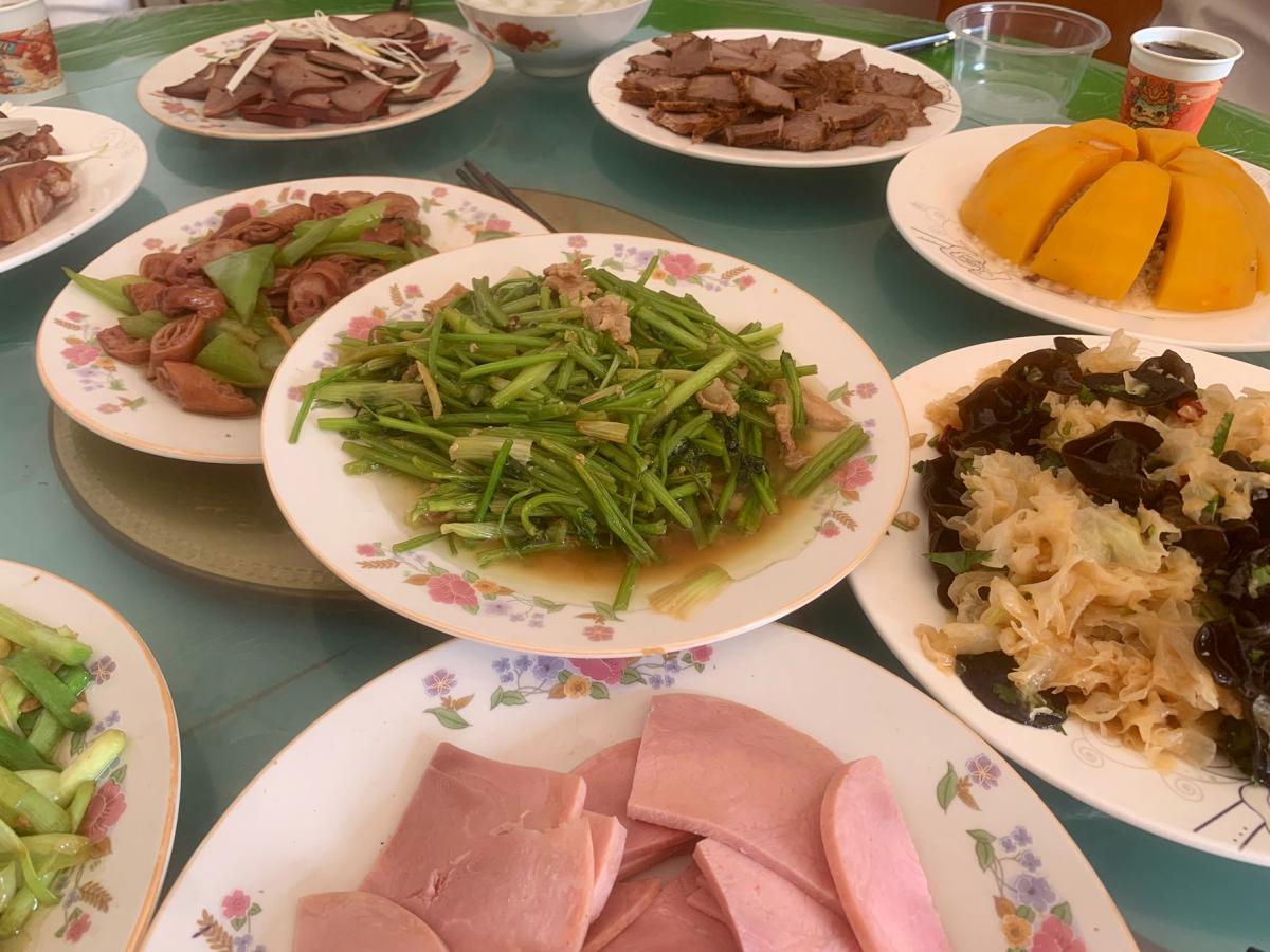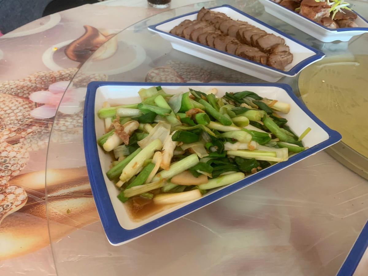 有涼菜有熱菜,有肉菜也要有青菜,青菜不僅可以搭配整桌子菜的色彩,而且青菜也很受歡迎。青蒜一端上桌,喫一口弟弟的哥們們就直誇弟媳炒的好喫,我是一口都沒嚐到。