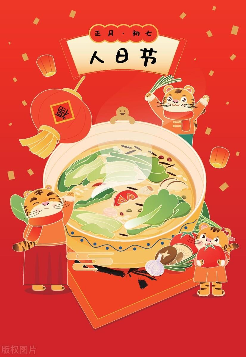 “人日”即人的生日,農村老人都知道,初七、十七、二十七統稱爲“人日”,初七管小人,十七管中年人,二十七管老人,所以正月初七主要管小人,也就是孩子,我們祖國的未來。過生日當然要喫麪條,麪條又長又瘦,不但代表長壽,而且還代表着“順溜”,喫麪條意思是捆住雙腿,代表長長久久,平安順遂。