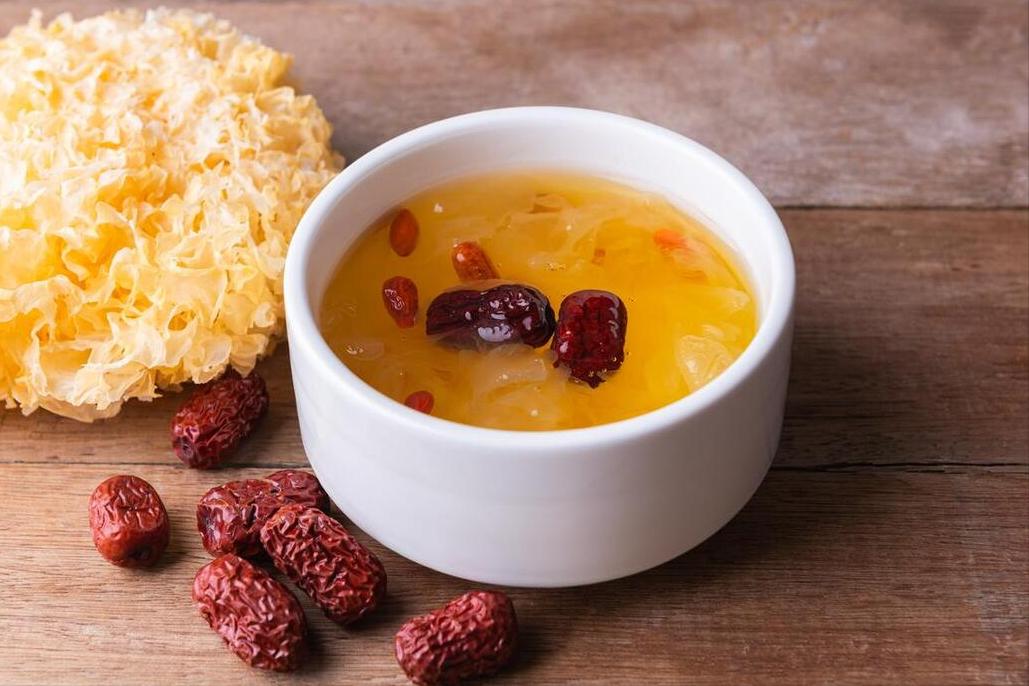 1、銀耳放在水中泡發,泡軟以後撕成小朵,直接倒在鍋子裏,再把紅棗清洗一下,一起倒進去。