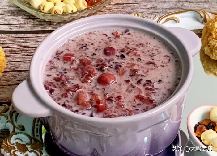 準備紅豆、紅棗、黑米、糯米、花生、黑芝麻、清水。