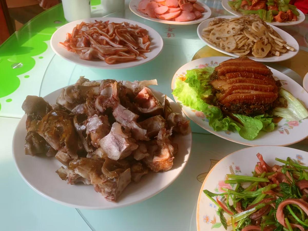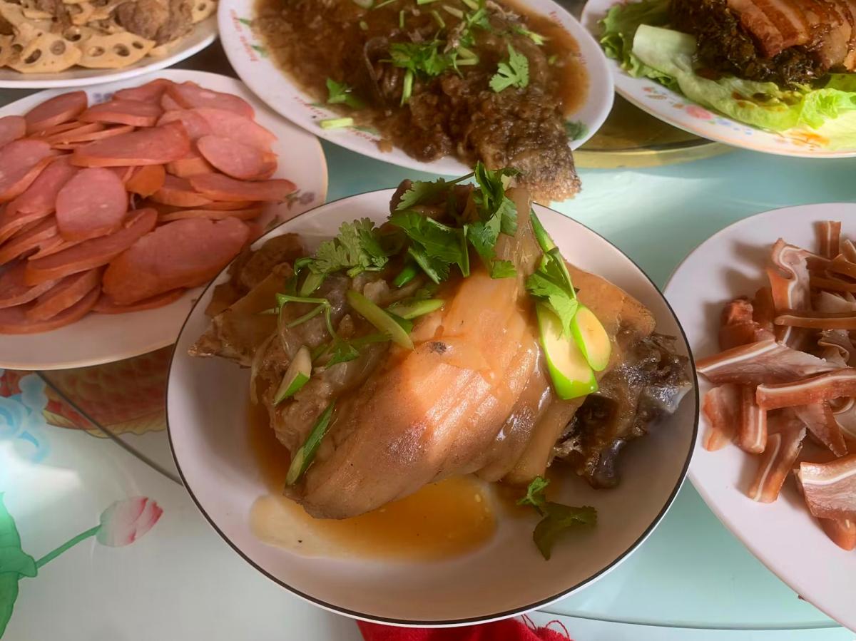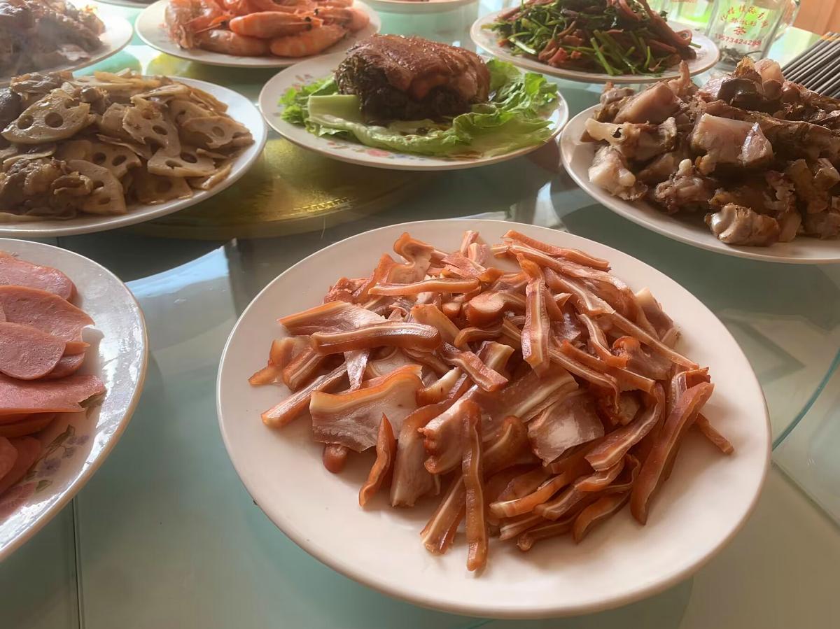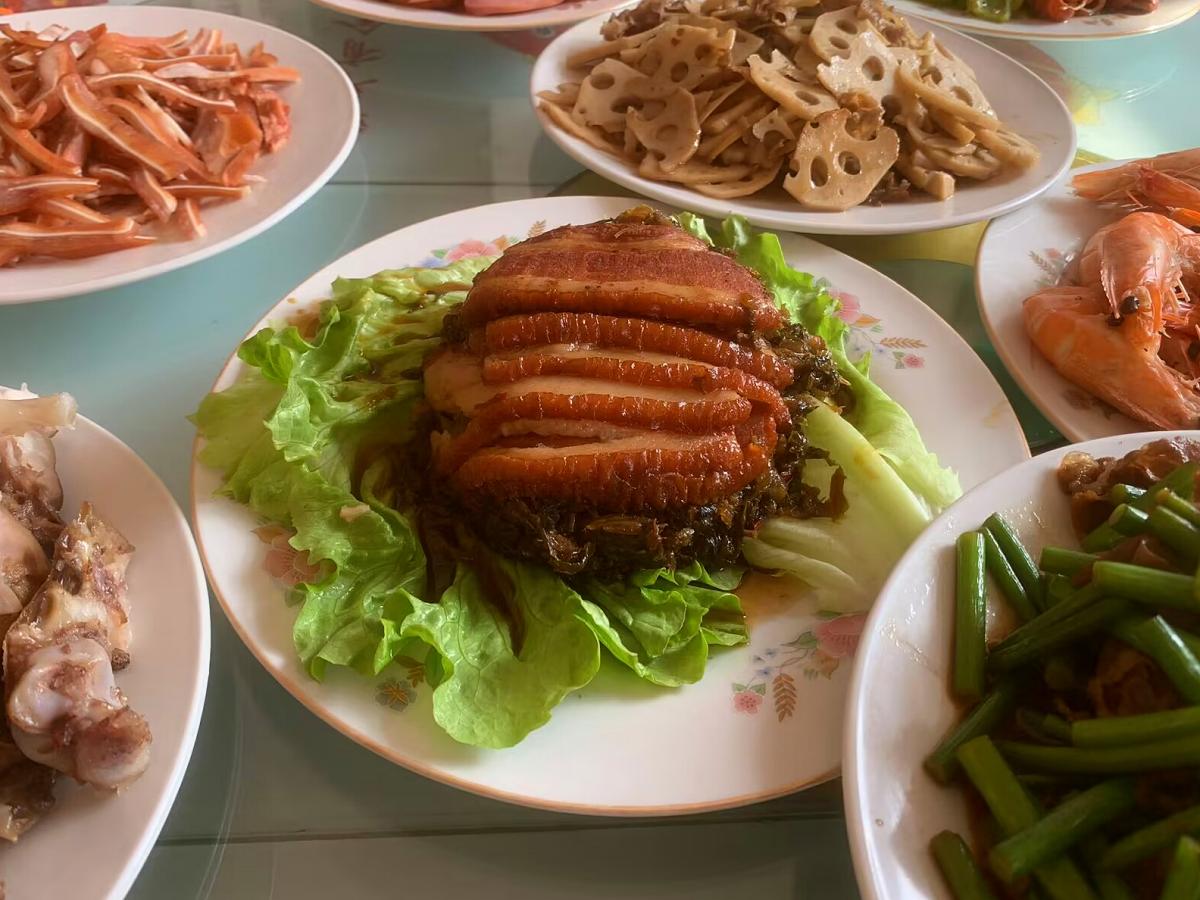 豬耳朵可是女婿們都喜歡喫的下酒菜,爸爸一早就騎着電動車去肉食店,買了兩個剛出鍋的豬耳朵,色香味俱全,買回來後直接切一下。還有爸爸的拿手菜,梅菜扣肉,這可是年前爸爸自己做的,一共做了18碗扣肉,上桌後一人一筷子瞬間秒光,都誇爸爸的手藝好,最後連生菜葉都沒剩。