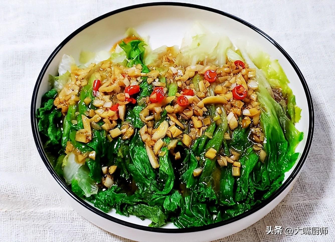 最後將蒜蓉汁澆在生菜上,就可以上桌了。