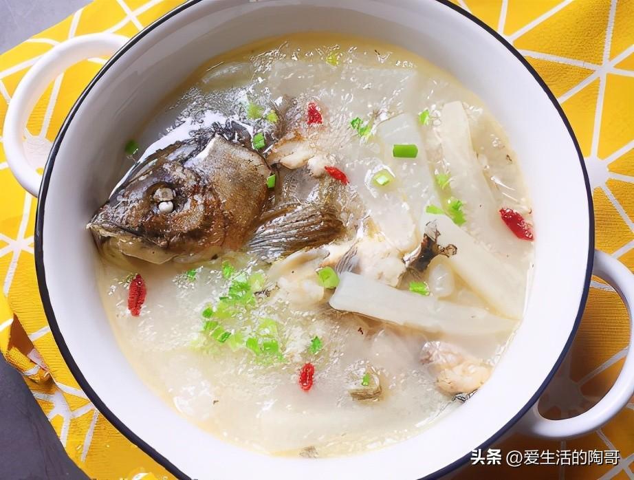 春天的“開河鯽魚”不僅特別鮮美,營養價值也很高!搭配蘿蔔絲一起煮湯喝,鮮香味美。湯的裏面再加入陳皮,養生好處更加大。不僅可以健脾祛溼,還可以益氣補虛、健脾養胃、養肝明目。