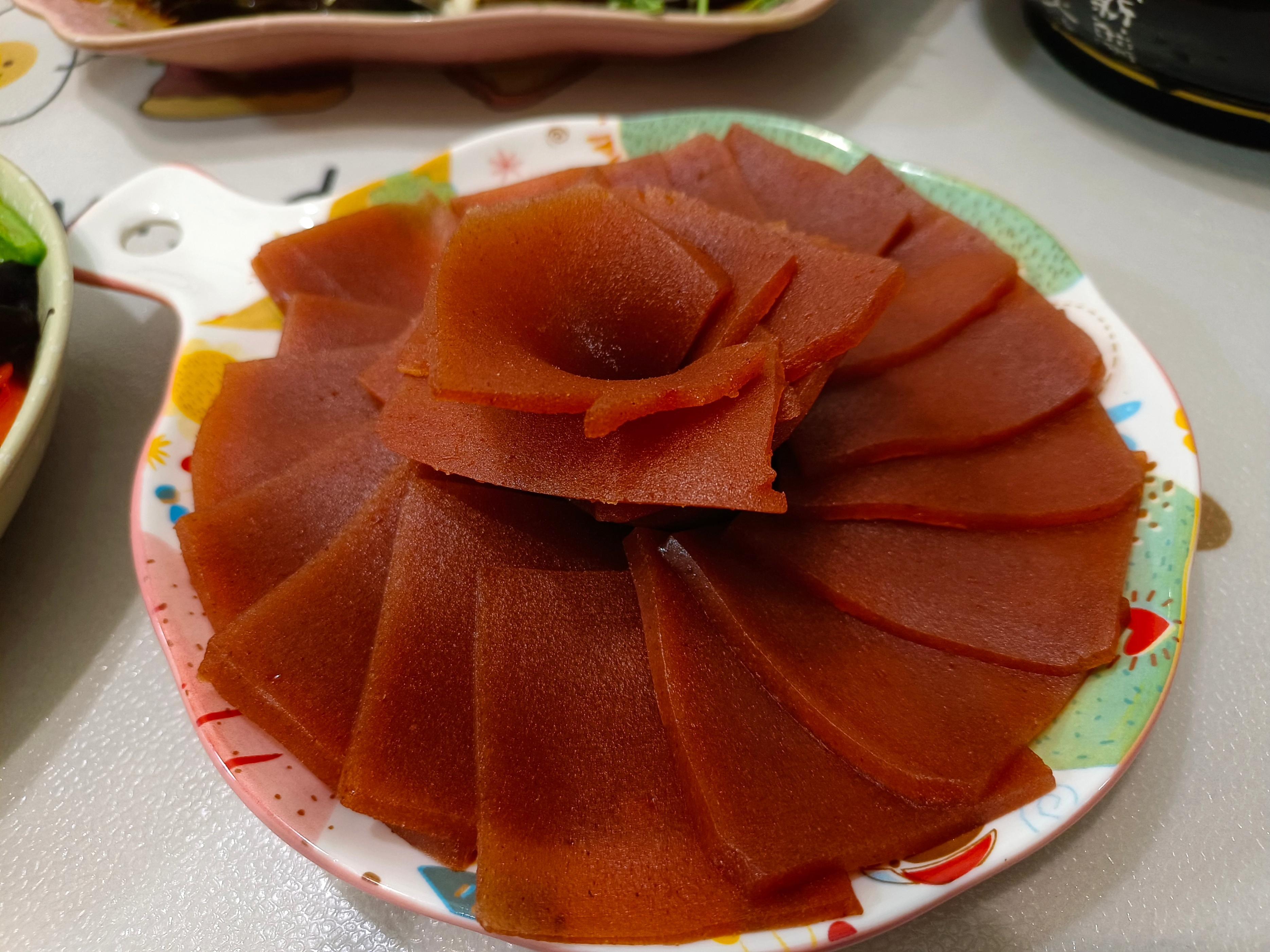 侄女說這盤山楂片是她親自切的,算是一道餐後甜品了,酸酸甜甜的很是解膩。