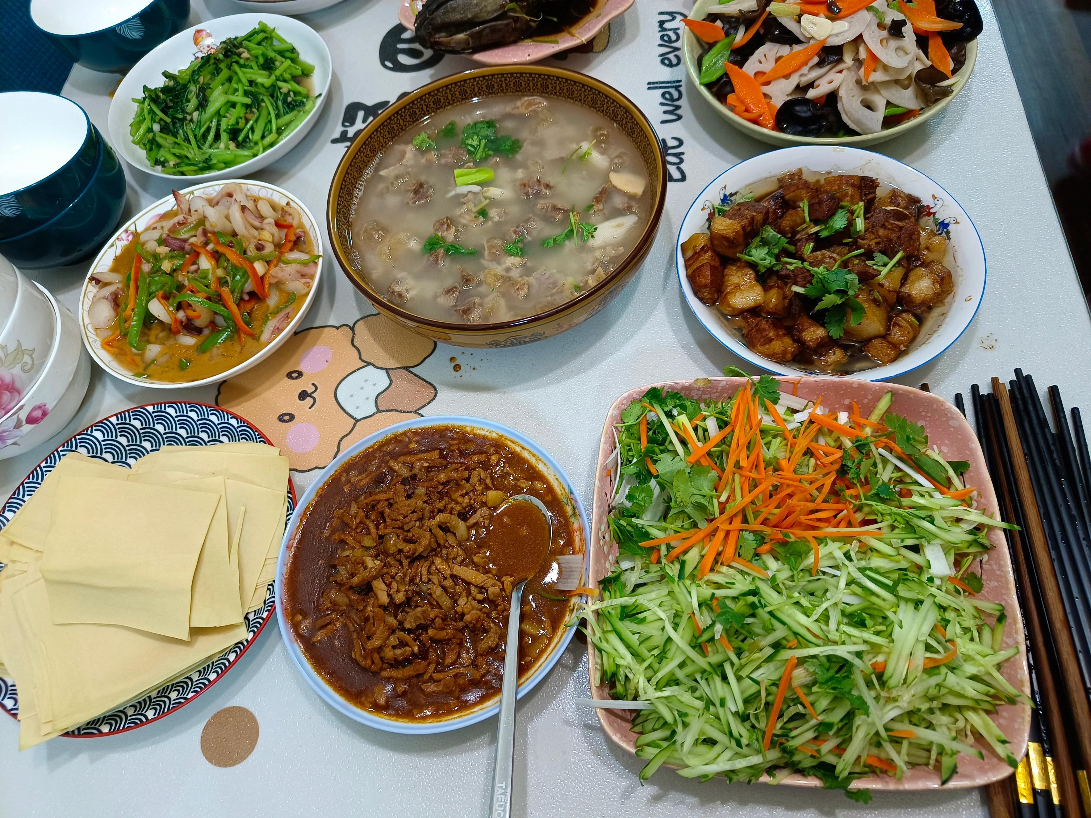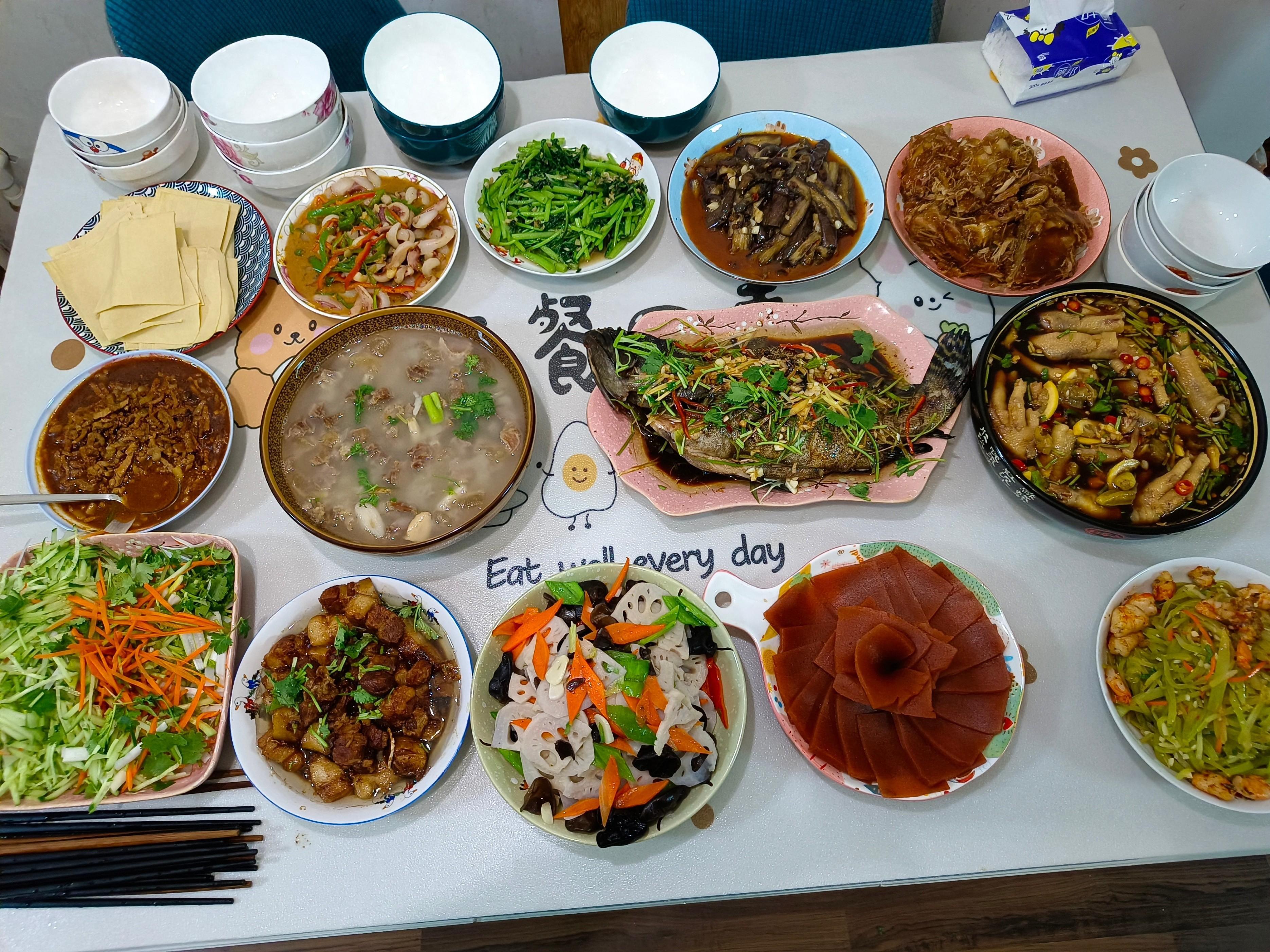 喫飯前我拍了張照片發朋友圈,很多網友說看着好喫,想來蹭飯;也有網友說這桌飯菜看着很家常,很接地氣。我們兩家六個人,一共做了10道菜、一個湯,嫂子說她算了一下成本大概用了300塊,感覺很值,這要是下飯店點這麼多菜,少說也得五六百吧?現在的人都喜歡到飯店招待客人,其實我覺得還是在家裏喫更實惠,而且家裏的環境也更舒適溫馨,你覺得呢?