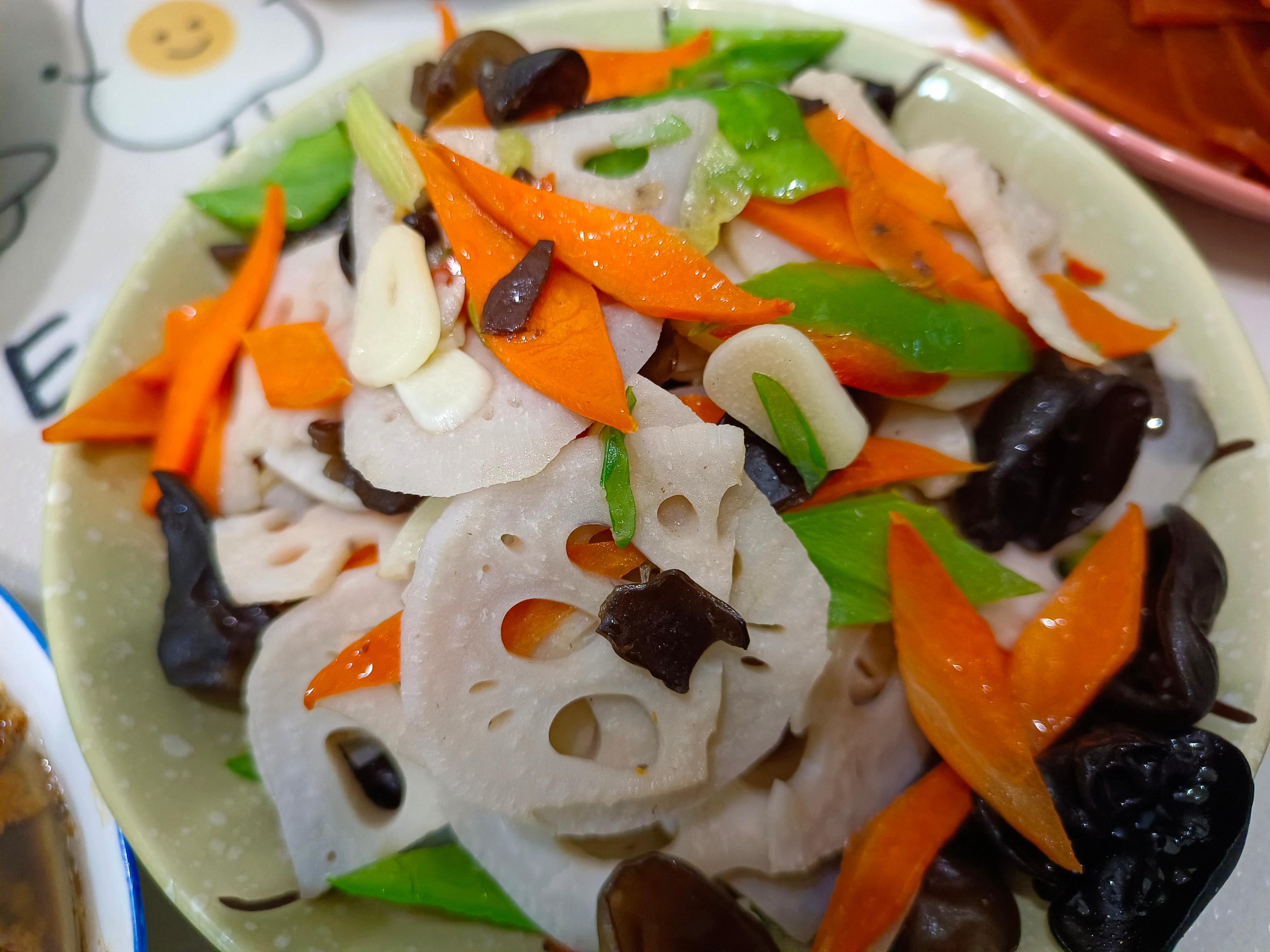 我每次炒蓮藕總是會把蓮藕片炒得黑乎乎的,嫂子做飯還是有一定的功底的,你看這顏色搭配的,看着就特有食慾。