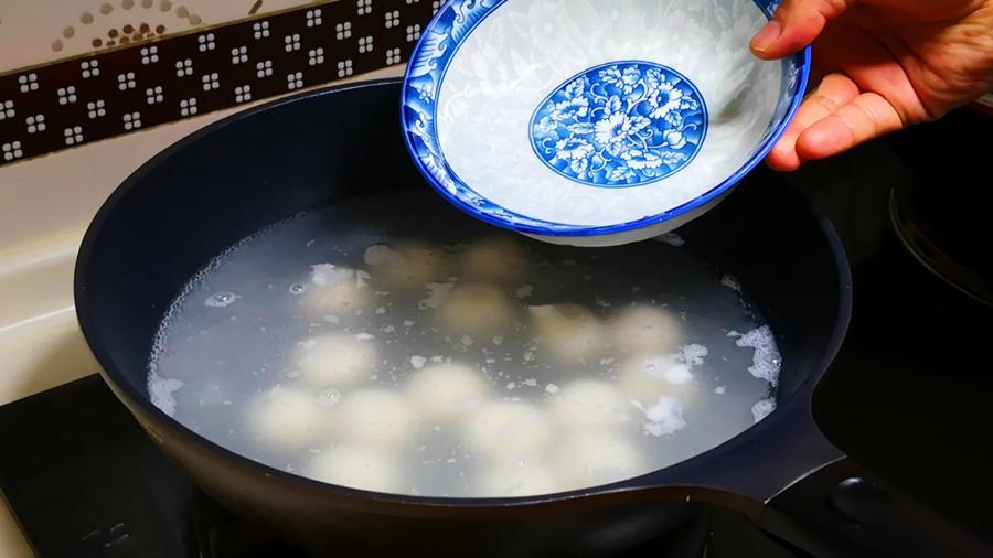 3、點水,煮湯圓時,要在水開後加一次冷水,這就是我們常說的“點水”。這樣做的目的是使得湯圓可以受熱均勻,而且口感也會更加的Q彈,注意一點,加水不要太多,否則會影響湯圓的口感。