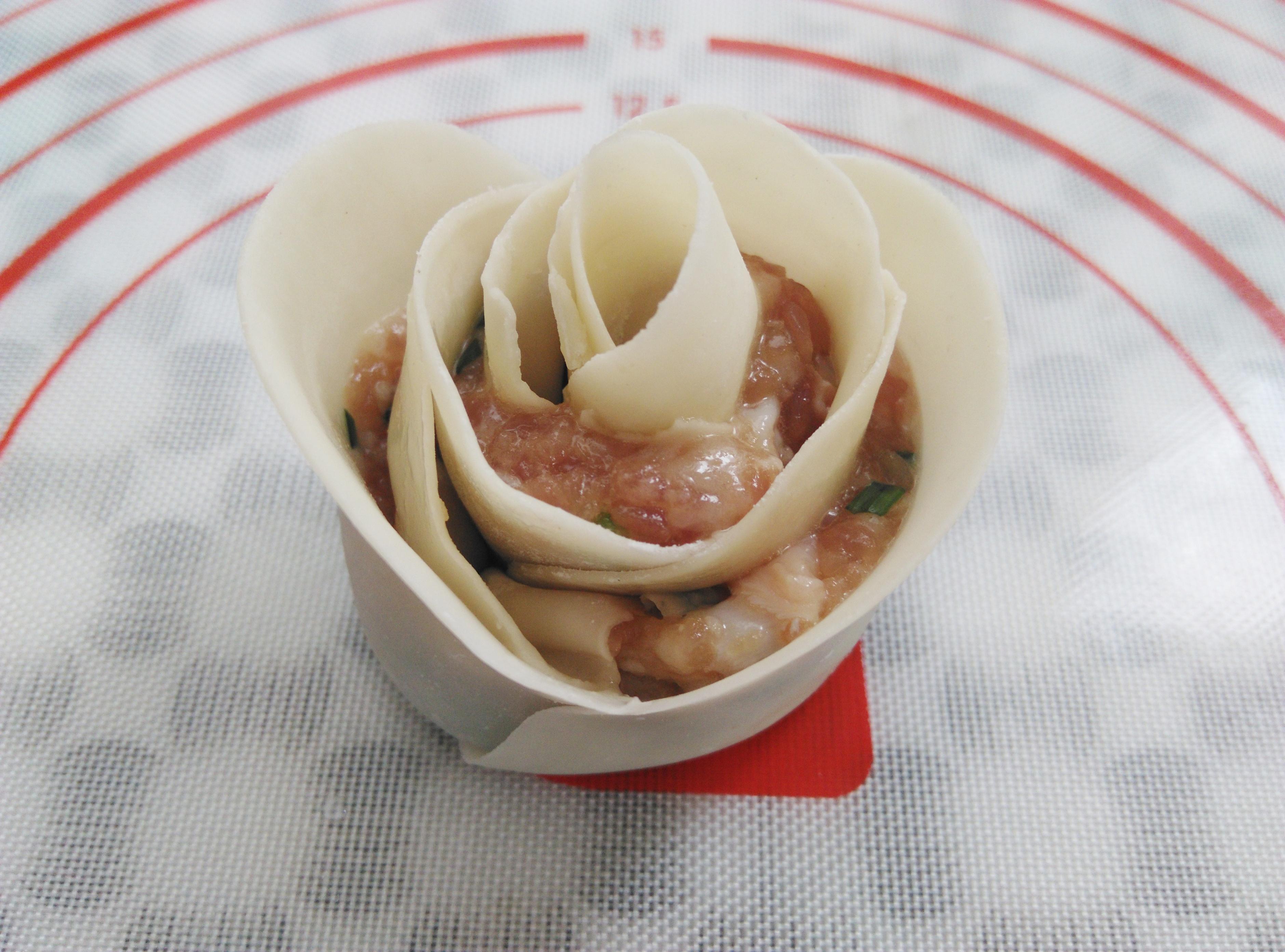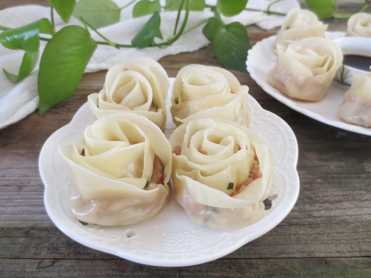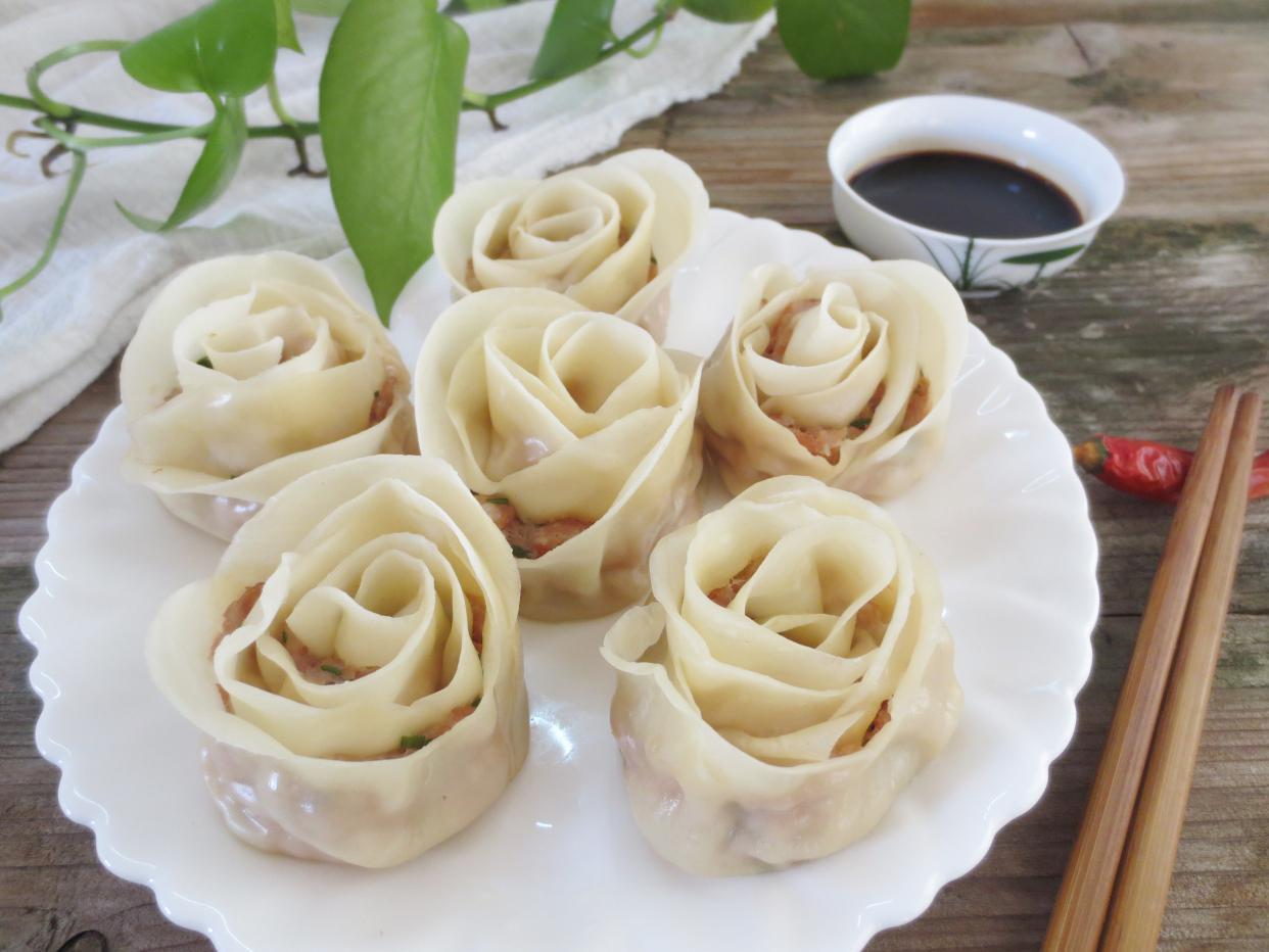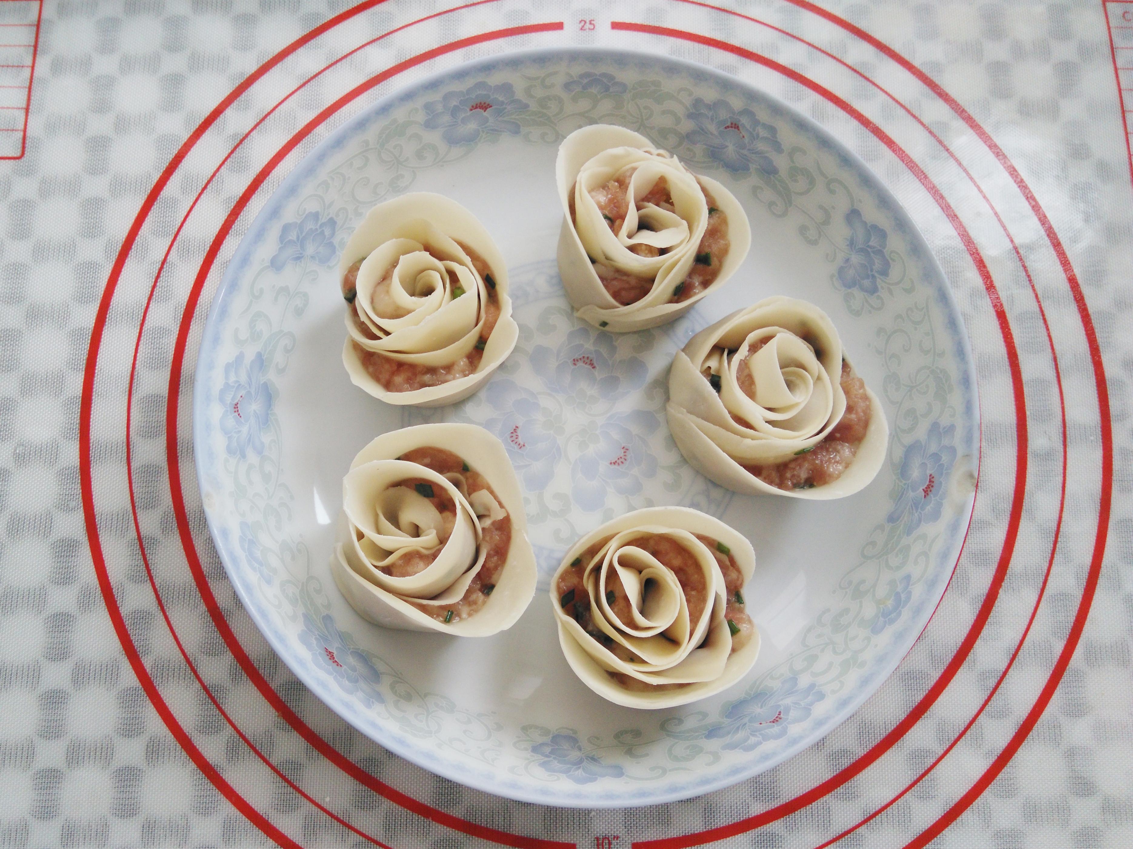 卷好的餃子整理一下,就像是一朵綻放的玫瑰花。