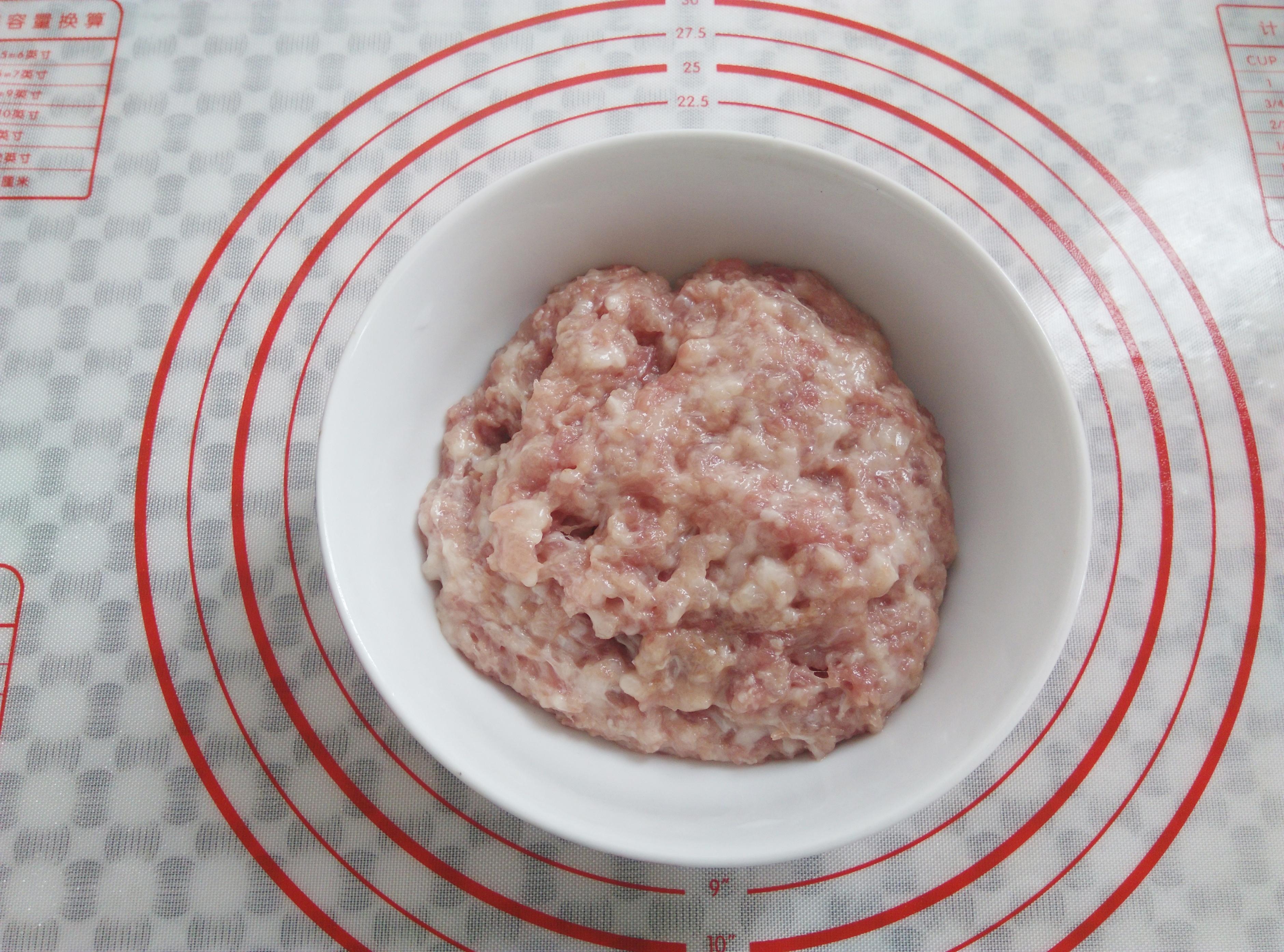 加一點水攪拌到肉餡吸收,加入食用油混合均勻,鎖住水分。