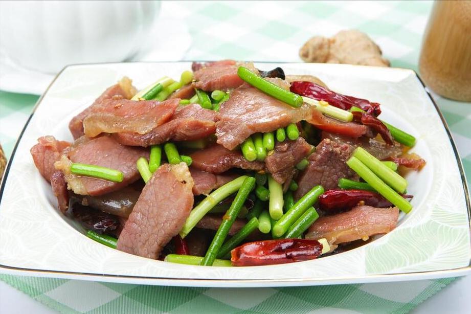 用到:臘肉、蒜薹、幹辣椒、鹽、雞精、生抽、食用油