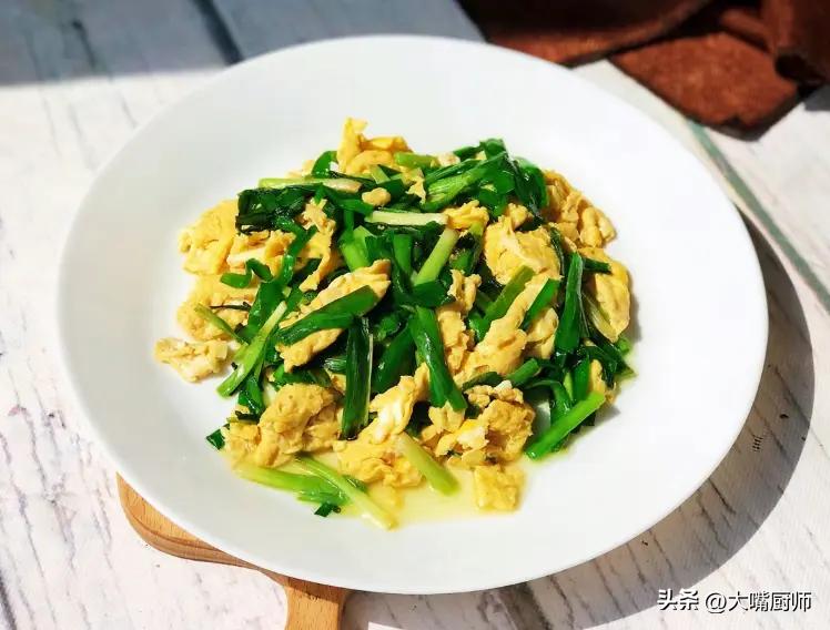 1、碗裏打入幾個雞蛋,放入適量食鹽、料酒,用筷子均勻。韭菜摘洗乾淨,瀝乾水分後切成長段。起鍋加油燒熱,倒入攪拌好的雞蛋液,大火煎一會兒,熟透後炒成大塊,盛出備用。