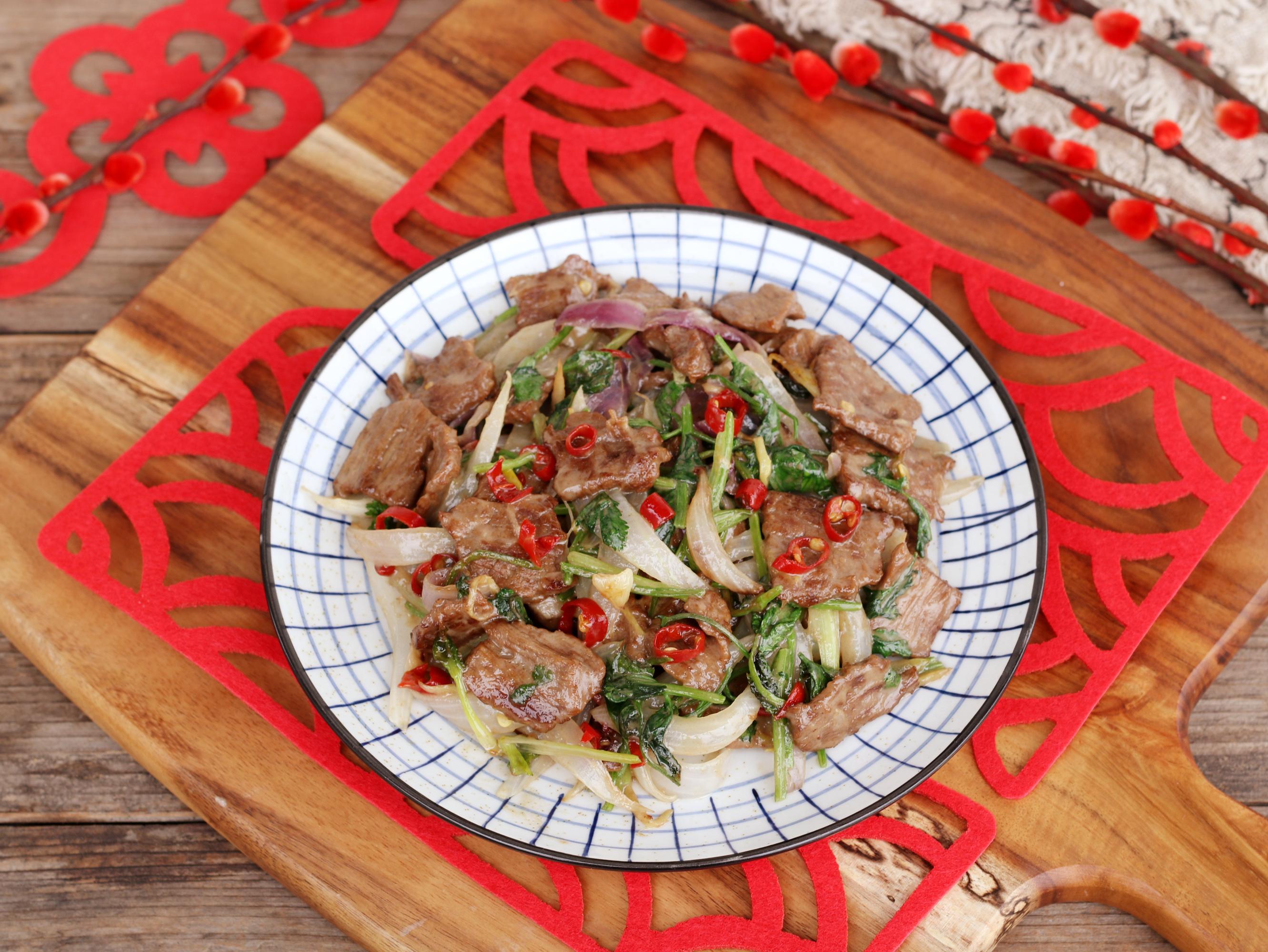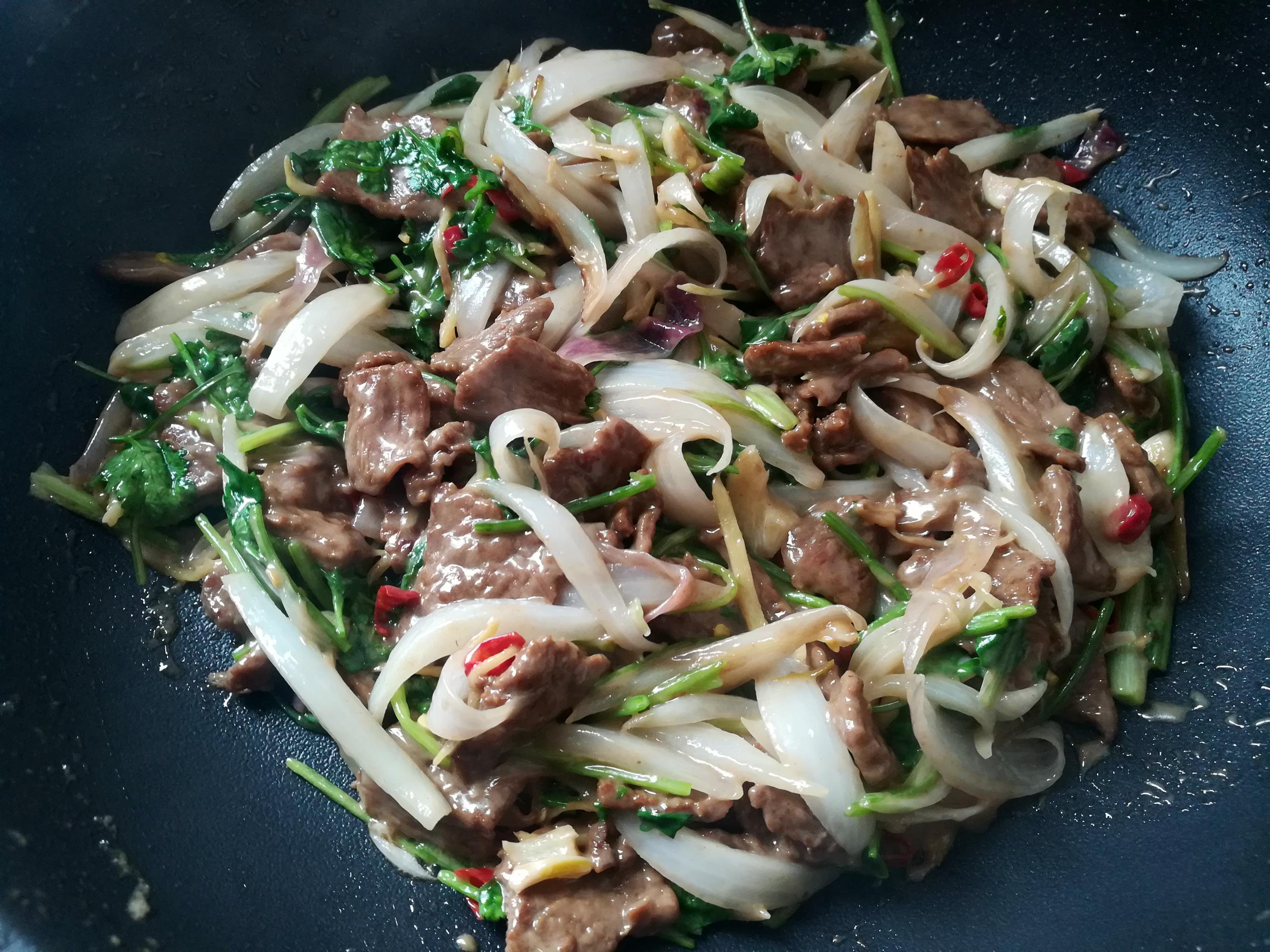 食材:洋蔥、牛肉、生薑、辣椒、香菜、食用油、鹽、料酒