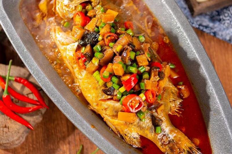 食材:鱸魚、蔥姜、小米椒、鹽、白糖、生抽、老抽、蠔油、料酒、食用油