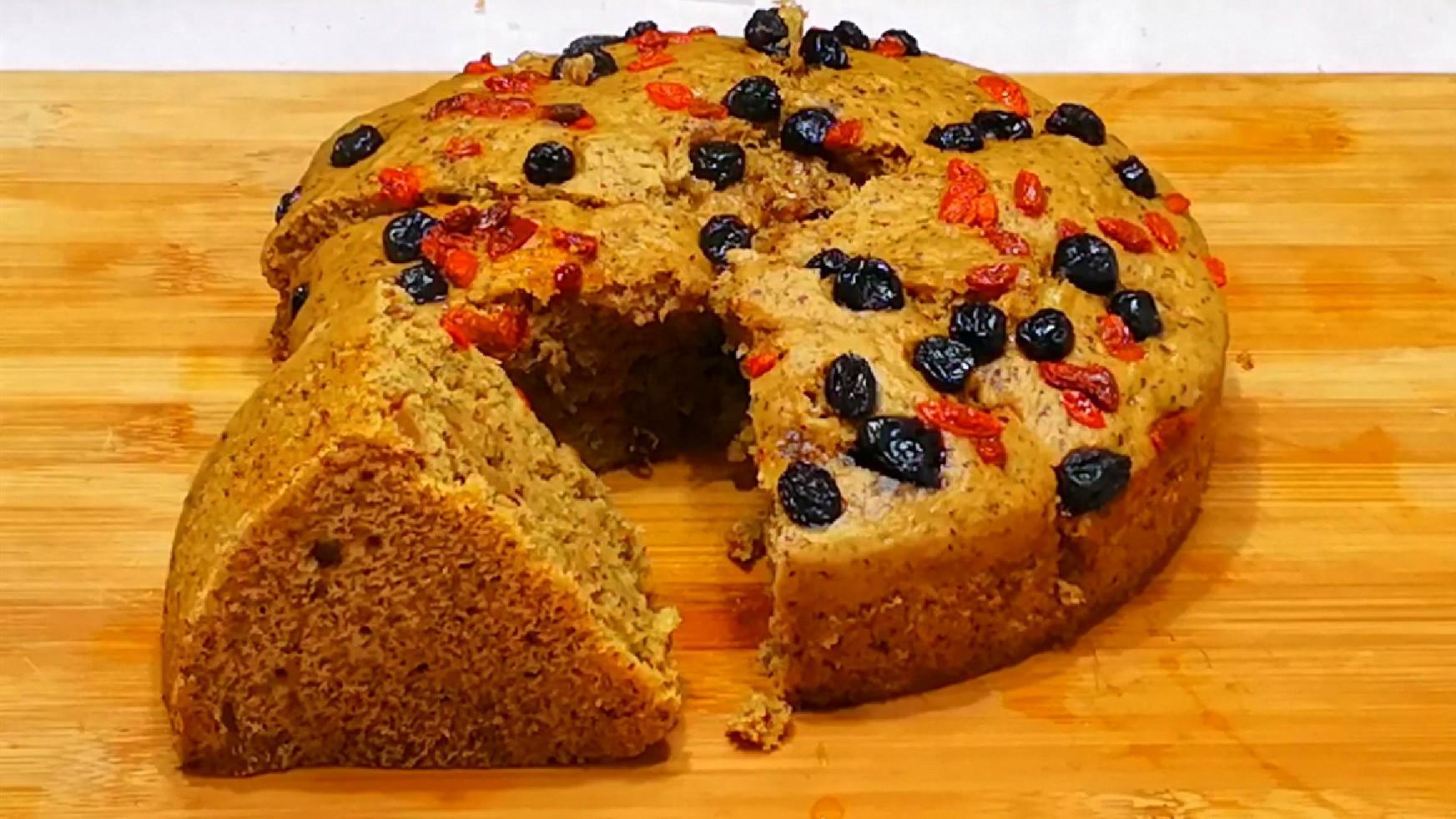 4.接着準備一個蛋糕模具,均勻地將模具內壁刷上一層油(防粘),然後將棗泥麪糊倒入模具中,再將表面弄平整,然後撒上一些我們喜歡喫的各種乾果,繼續醒發半個小時後,再放入蒸鍋中開蒸。